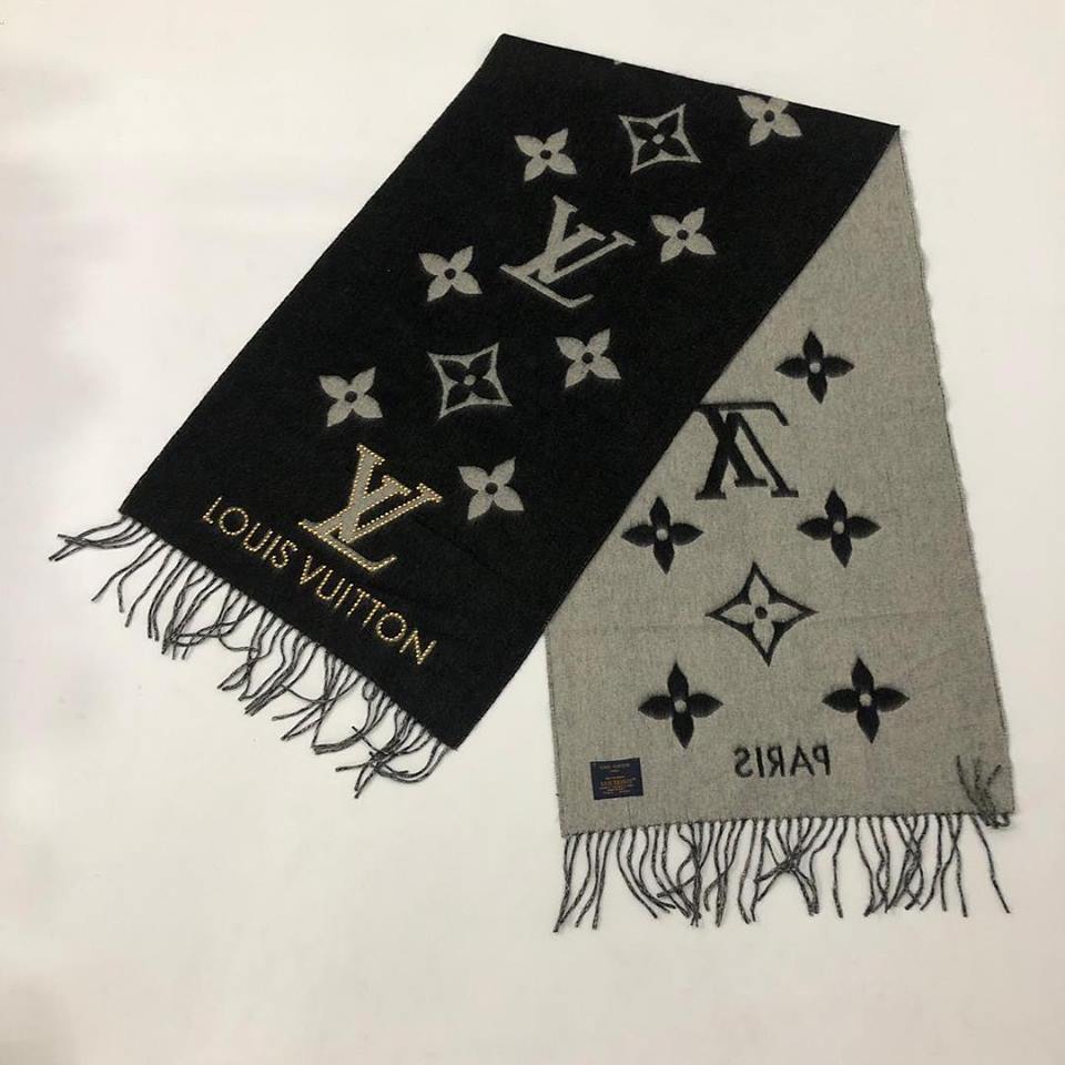 Представляем шарф Louis Vuitton АКС-1208 – элегантный аксессуар, выполненный в классическом стиле. Шарф выполнен в двухцветной гамме, сочетая черный и серый оттенки, украшен фирменным монограммным принтом Louis Vuitton. Блестящие элементы на черной стороне добавляют роскоши, а на серой стороне присутствует надпись "PARIS".