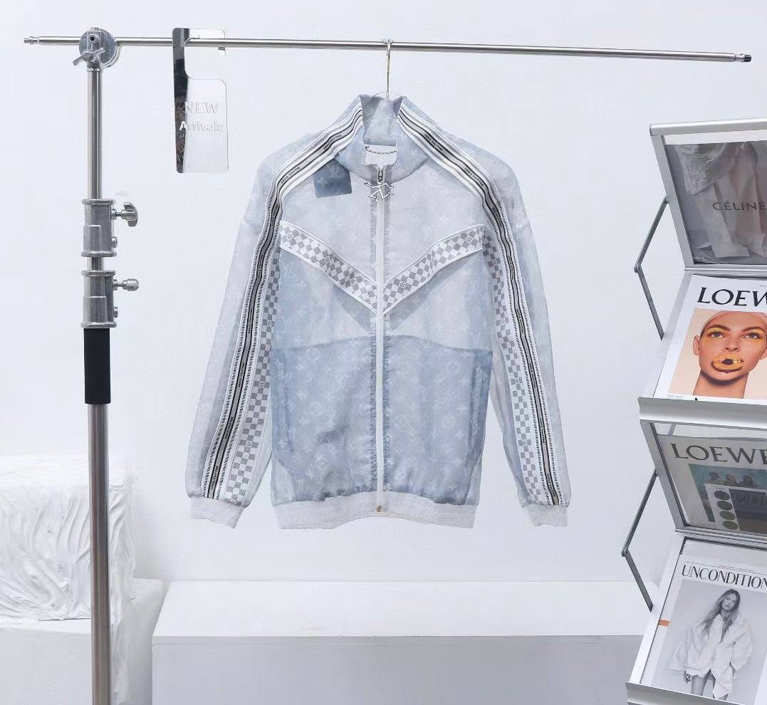 Бомбер Louis Vuitton LUX-69600 — это стильная и легкая модель, выполненная в полупрозрачной ткани с фирменным монограммным принтом. Детали в виде клетчатых вставок и лампасов по рукавам добавляют изделию динамичности и спортивного шика. Этот бомбер идеально подойдет для создания модных и расслабленных образов в весенне-летний период.