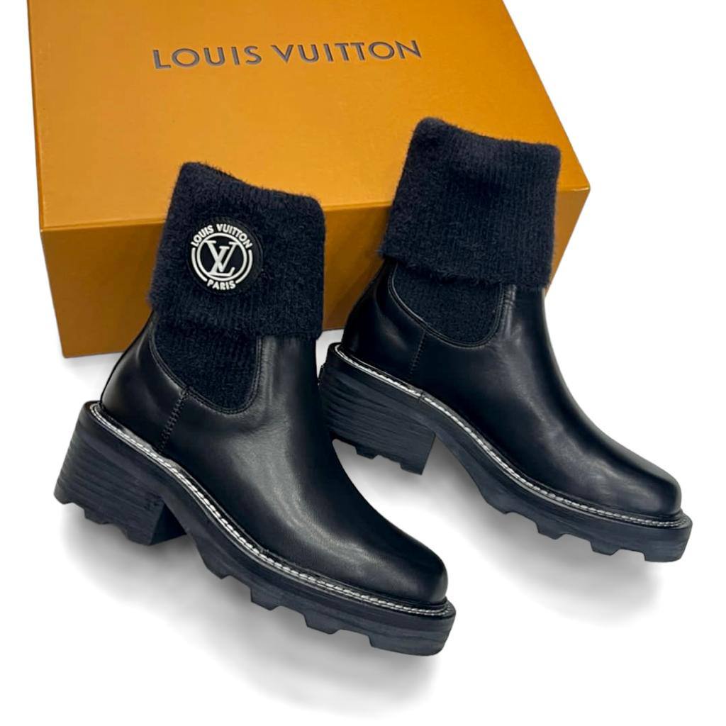 Ботинки Louis Vuitton LUX-81655 – это стильные ботинки черного цвета, сочетающие в себе классику и современность. Они имеют круглый мысок, фактурную подошву и укороченную форму голенища с текстильной вставкой. Идеально подойдут для создания повседневных и вечерних образов.
