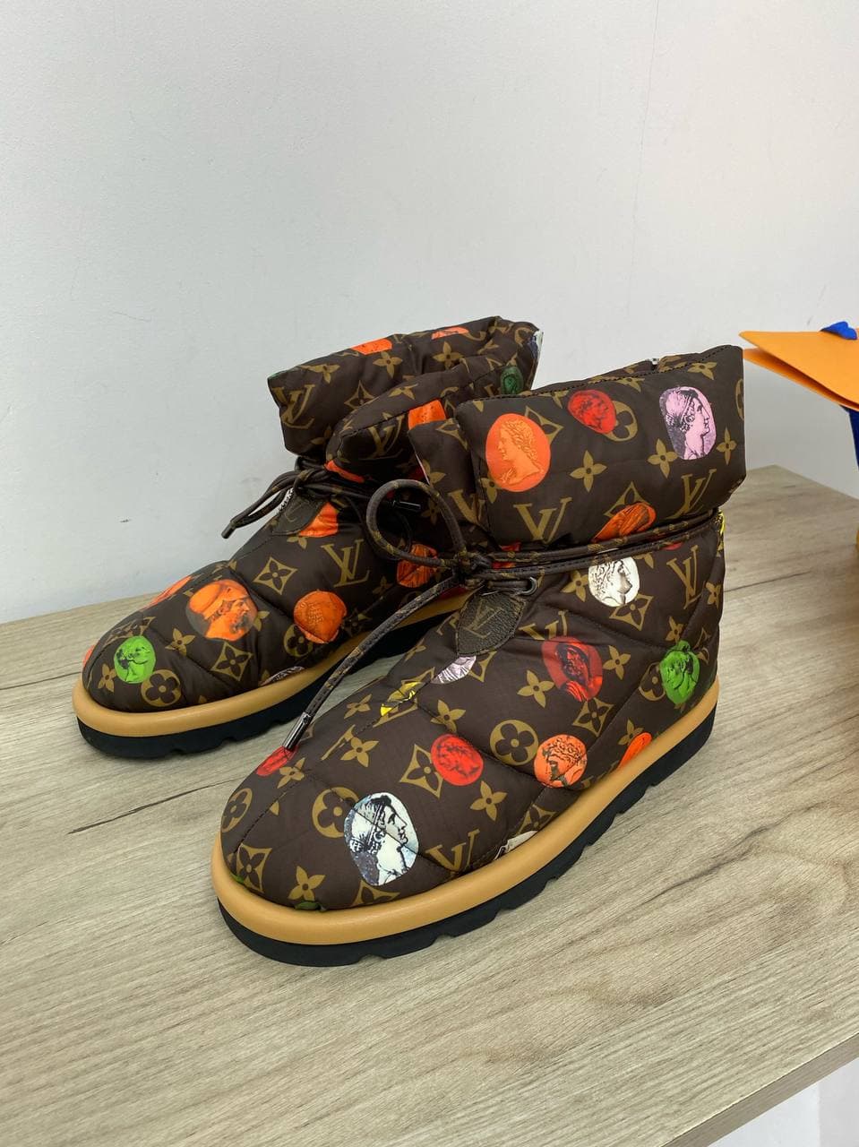 Женские ботинки Louis Vuitton LUX-58210 представляют собой стильную и практичную обувь для современной женщины. Дизайн ботинок сочетает в себе узнаваемый монограммный принт Louis Vuitton с яркими, контрастными принтами-портретами, придавая изделию уникальный и запоминающийся вид. Мягкий, стеганый верх и удобная шнуровка обеспечивают комфорт при носке в течение всего дня, а прочная подошва гарантирует устойчивость.