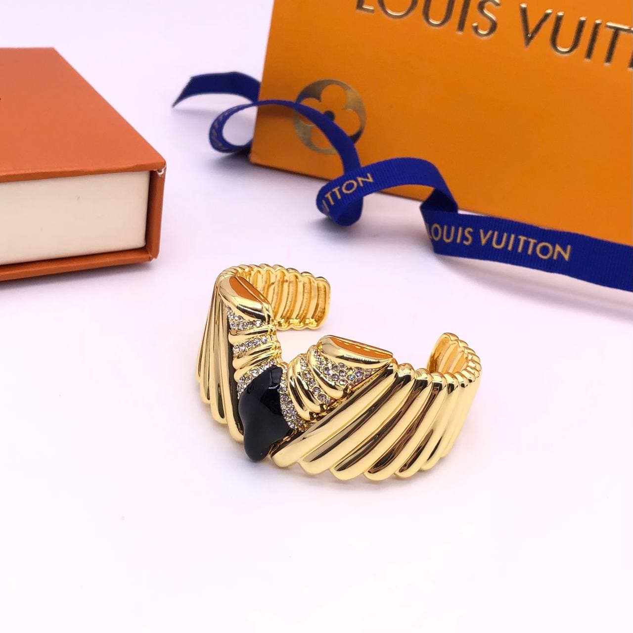 Представленный браслет Louis Vuitton LUX-63191 — это изысканное ювелирное изделие, олицетворяющее роскошь и элегантность. Дизайн браслета поражает своей утонченностью: золотистые элементы, напоминающие веера или крылья, украшены мерцающими кристаллами, а центральную часть дополняет вставка из черного камня. Это украшение идеально подойдет для создания запоминающегося образа.