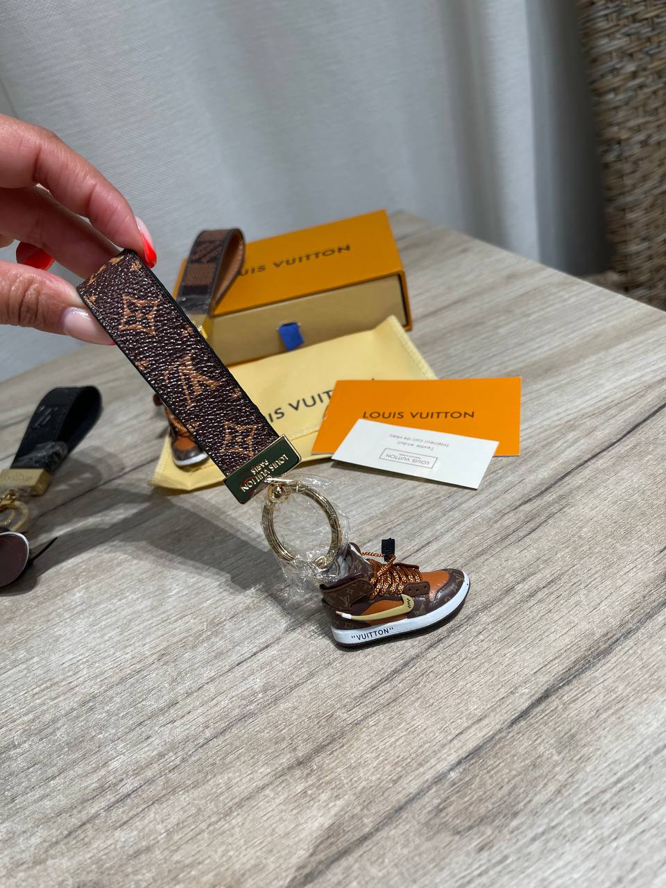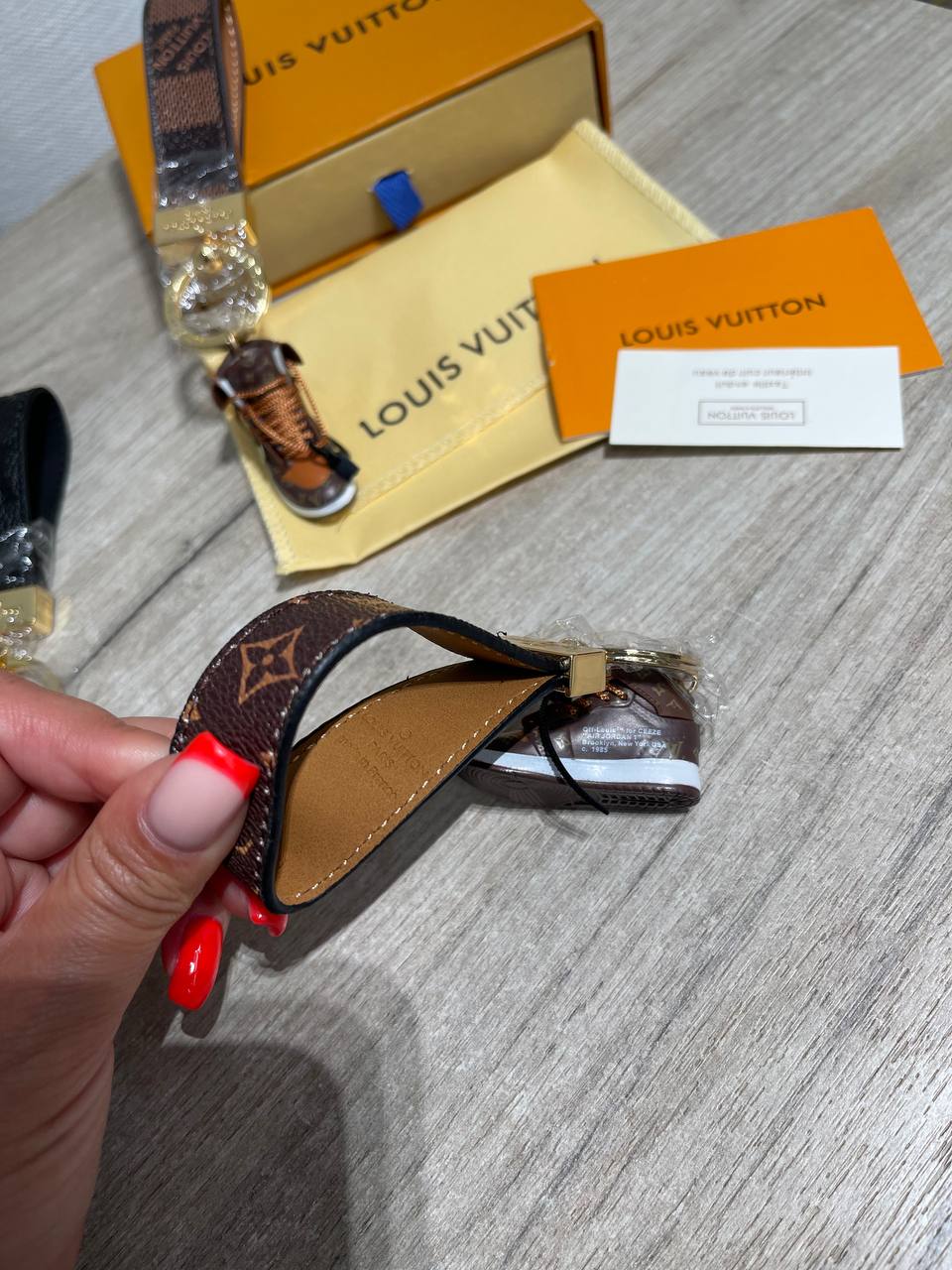 Брелок Louis Vuitton LUX-121670 – стильный аксессуар, сочетающий в себе роскошь и современный дизайн. Выполненный в форме миниатюрного кроссовка, он станет прекрасным дополнением к вашему образу и подчеркнет индивидуальность.