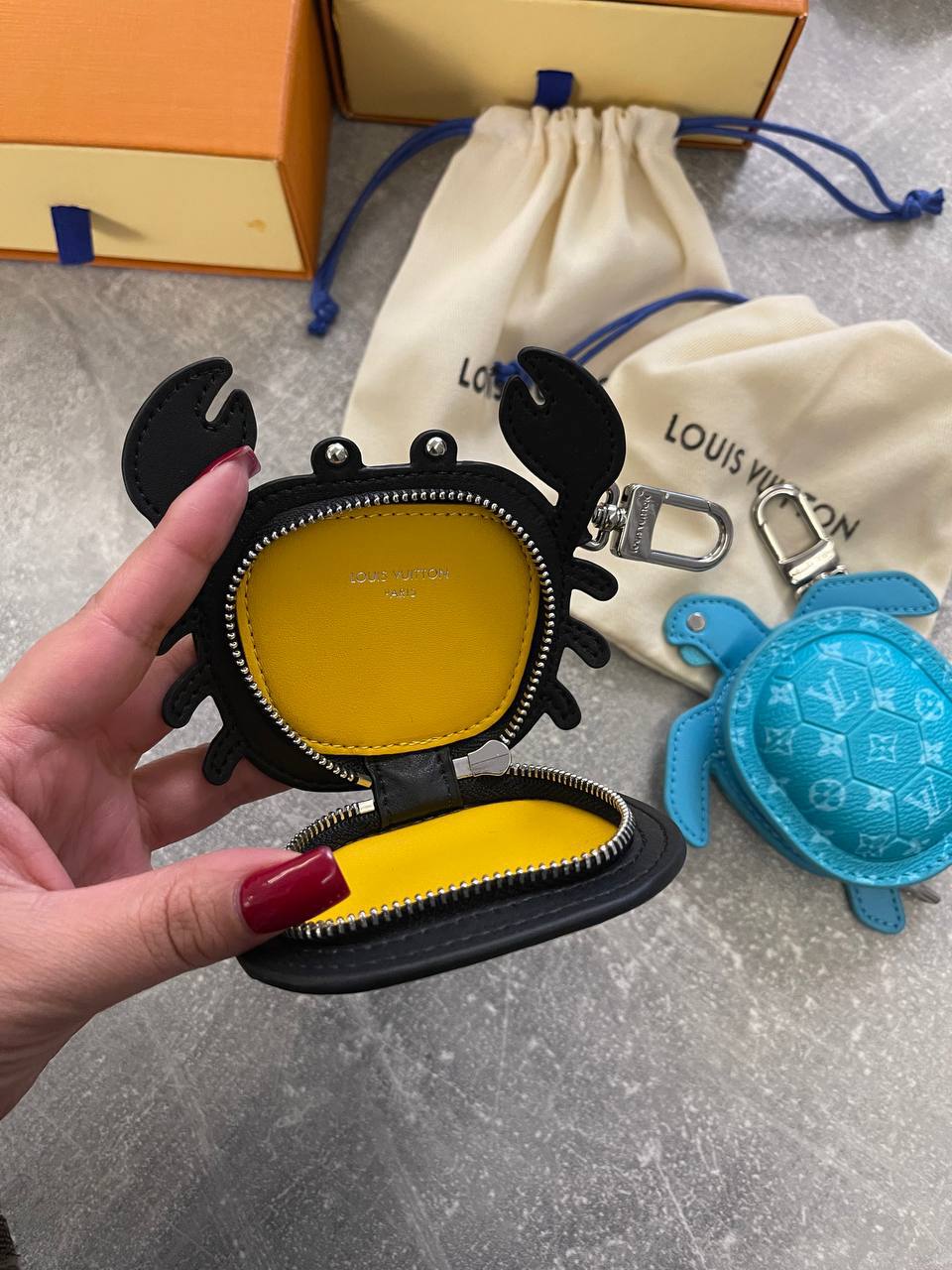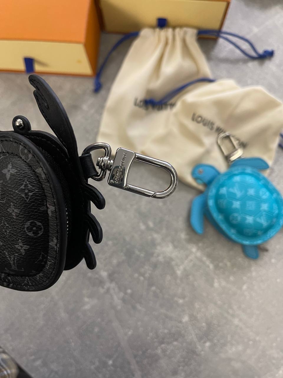 Брелок Louis Vuitton LUX-128667 в форме краба — стильный аксессуар, который добавит индивидуальности вашему образу. Этот брелок станет отличным дополнением к сумке, ключам или рюкзаку, подчеркивая ваш вкус.