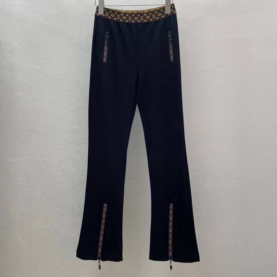 Эти стильные брюки Louis Vuitton LUX-60697 представляют собой сочетание классического кроя и узнаваемого дизайна бренда. Темный цвет и фирменный принт на поясе и манжетах придают им элегантность. Модель отлично подойдет для создания как повседневных, так и более изысканных образов.