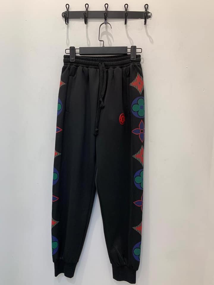 Брюки Louis Vuitton LUX-48135 представляют собой стильный вариант спортивной одежды, который сочетает в себе узнаваемый дизайн бренда и высокий уровень комфорта. Их свободный крой и эластичный пояс делают их идеальными для повседневного ношения и активного отдыха. Оригинальный принт по бокам добавляет модельному ряду индивидуальности.