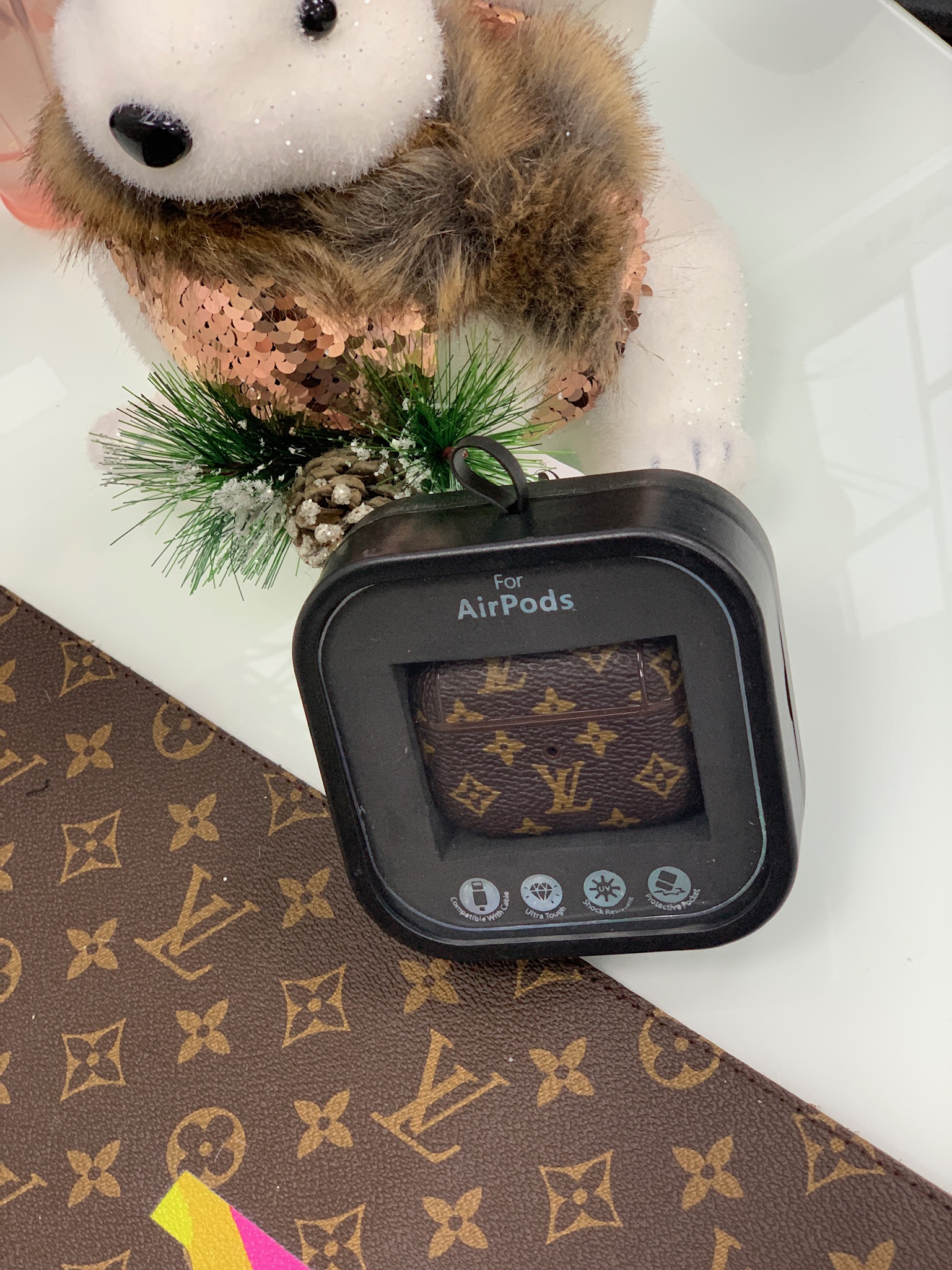 ЧЕХОЛ OLOKA С КАРАБИНОМ ДЛЯ НАУШНИКОВ APPLE AIRPODS Louis Vuitton LUX-25638