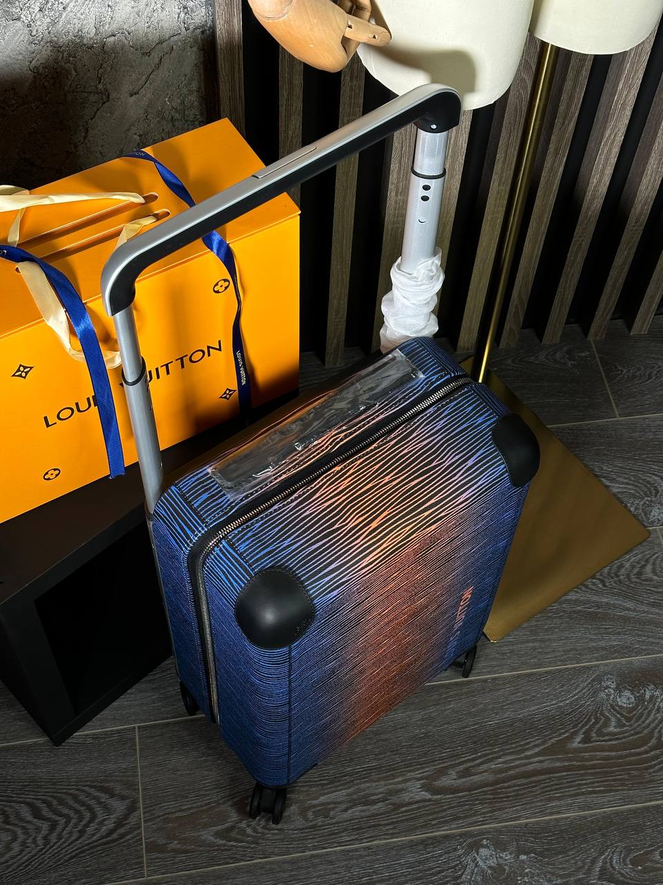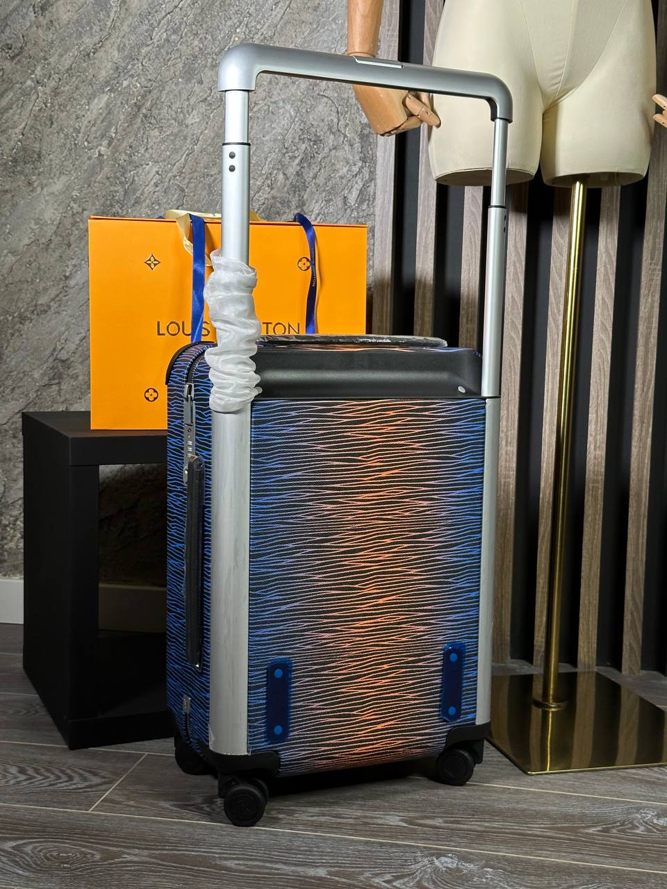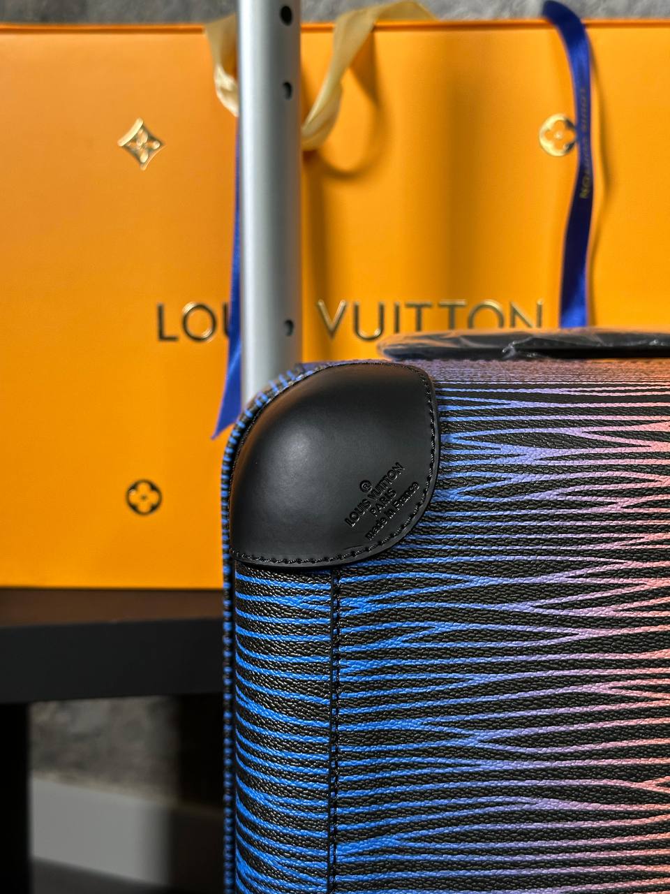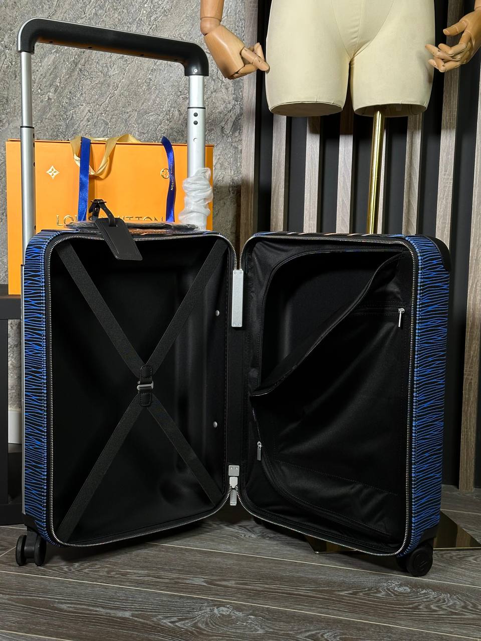 Чемодан 50+5/35/23 см Louis Vuitton LUX-96332 представляет собой стильный аксессуар для путешествий. Он выполнен в современном стиле, сочетает в себе синие и оранжевые оттенки с текстурированным дизайном. Этот чемодан предназначен для удобной транспортировки личных вещей.