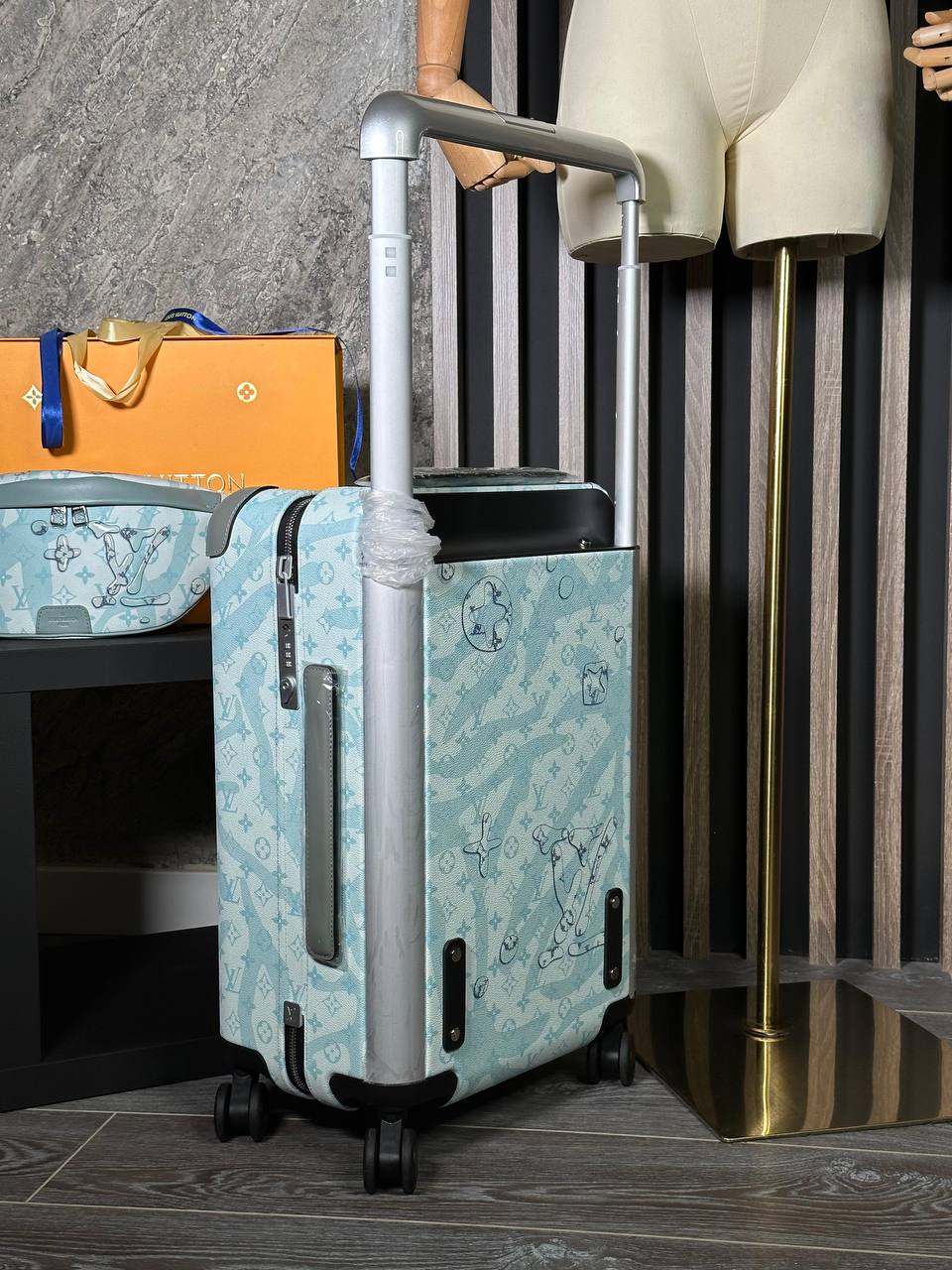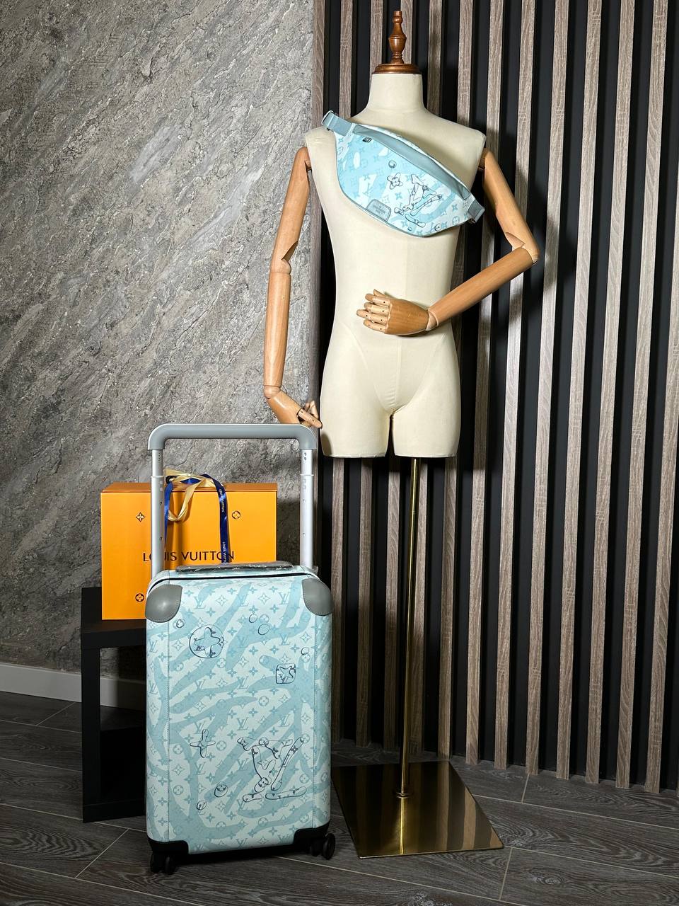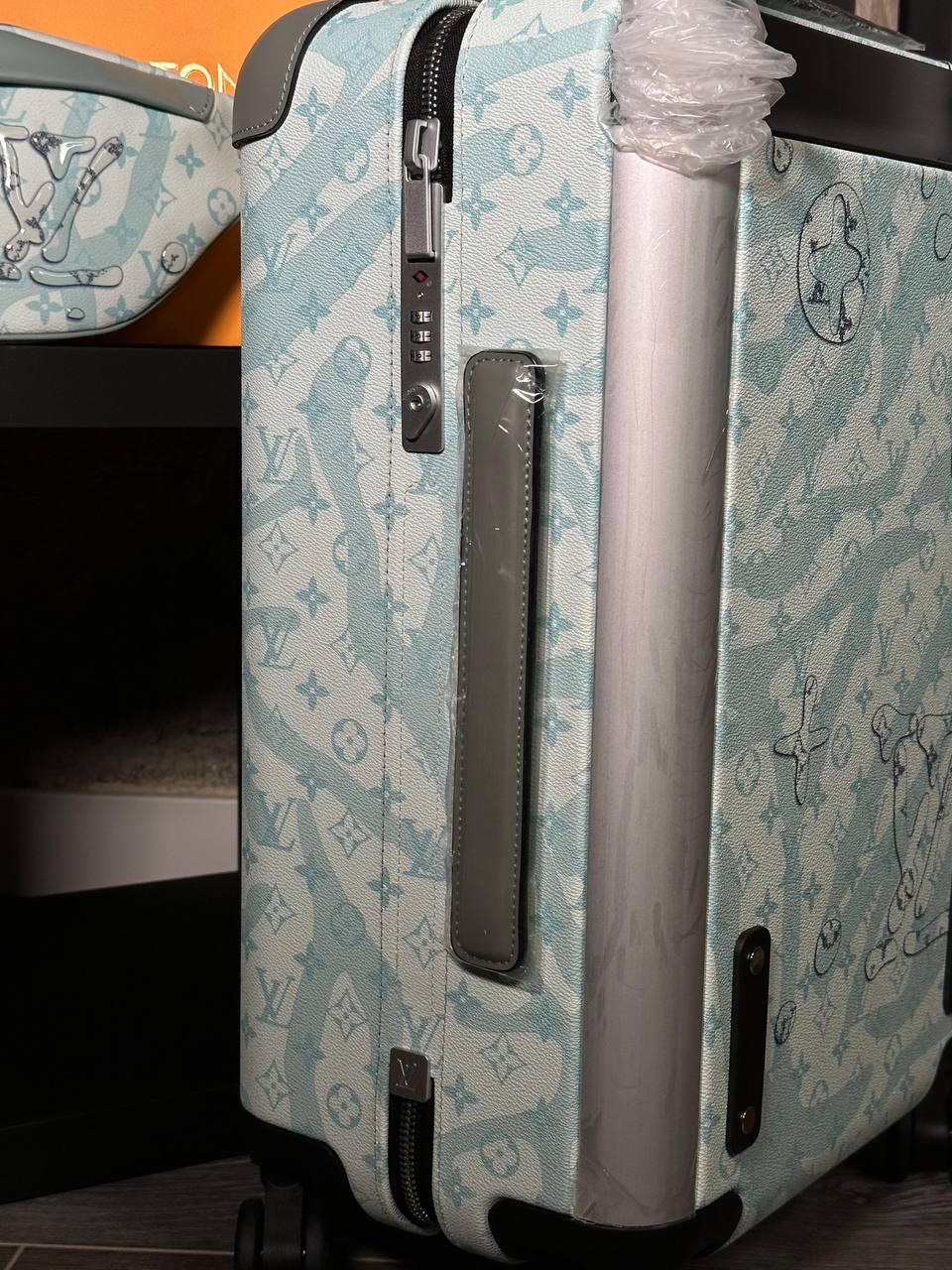 Чемодан 50+5 / 35 / 23см Louis Vuitton LUX-96119 — стильный дорожный аксессуар, сочетающий в себе узнаваемый дизайн бренда и практичность. Модель выполнена в голубых тонах с оригинальным принтом, придающим чемодану современный вид. Идеально подходит для путешествий и командировок, подчеркивая индивидуальность владельца.