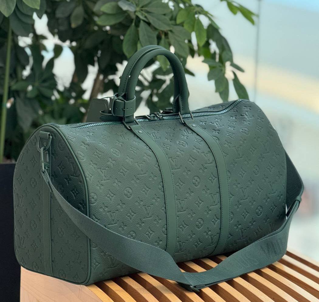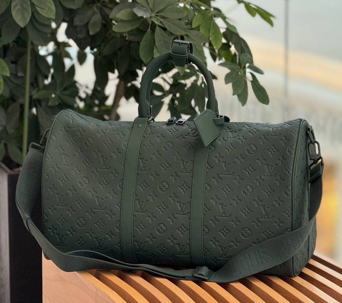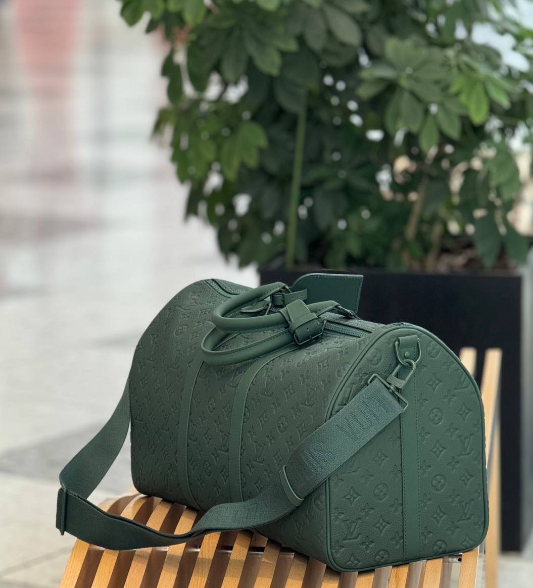 Дорожная сумка 50см Louis Vuitton LUX-120124 — это стильный аксессуар для путешествий, выполненный в классическом стиле. Сумка, представленная в зеленом цвете, обладает текстурированной поверхностью с характерным узором бренда, добавляющей ей элегантности. Предназначена для комфортного и стильного переноса личных вещей в поездках.