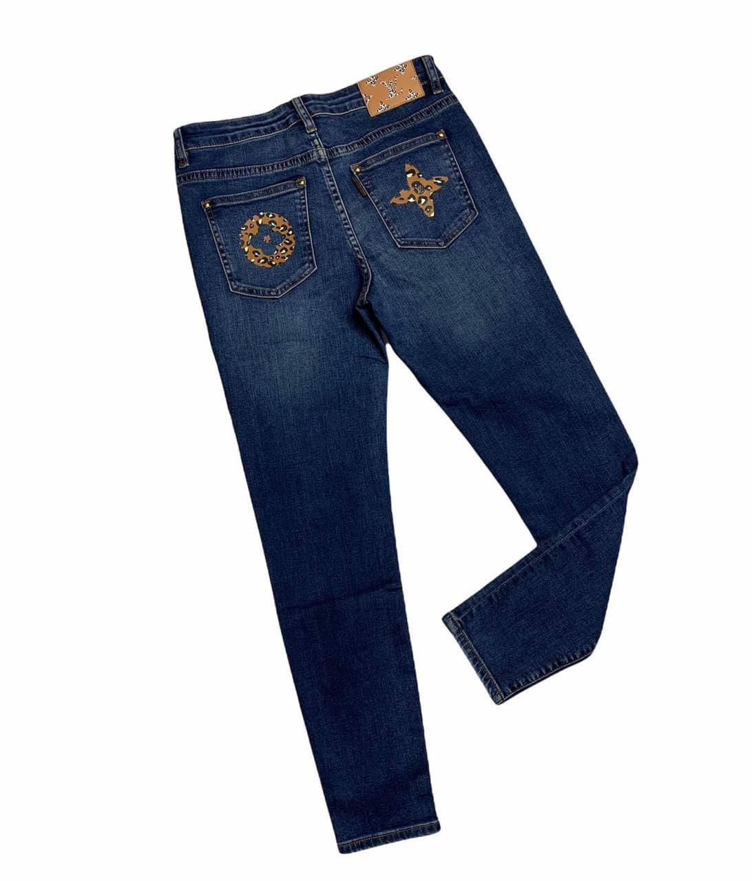 Джинсы Louis Vuitton LUX-57166 представляют собой стильный предмет одежды, сочетающий классический крой с уникальными дизайнерскими элементами. Темно-синий деним и эффектные аппликации в виде звезды и цветочного орнамента с леопардовым принтом на задних карманах, а также фирменная нашивка на поясе, придают изделию роскошный вид. Эти джинсы идеально подойдут для создания модных повседневных и более элегантных образов.