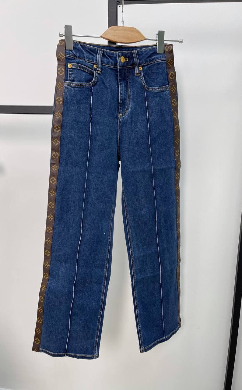 Эти джинсы Louis Vuitton LUX-57591 представляют собой стильное сочетание классического денима и узнаваемого дизайна бренда. Модель выполнена в синем цвете с акцентом в виде фирменной монограммы Louis Vuitton, расположенной по бокам штанин. Отстрочка контрастного белого цвета добавляет изделию завершенности и подчеркивает его детали.
