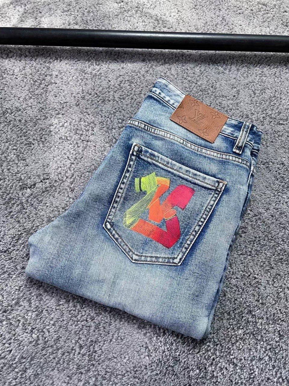 Джинсы Louis Vuitton LUX-75286 – это стильные джинсы из денима, выполненные в классическом стиле. Цвет – светло-синий, с потертостями, что придает им винтажный вид. На заднем кармане имеется красочная вышивка, добавляющая оригинальности. Джинсы предназначены для повседневной носки, идеально подходящие для создания модных образов.