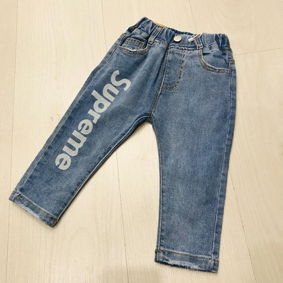 Эти джинсы детские Louis Vuitton LUX-14732 представляют собой стильный и практичный элемент гардероба для юных модников. Светло-голубой деним украшен крупным белым принтом "Supreme" на одной штанине, что придает изделию современный вид. Эластичная резинка на поясе и удобный крой обеспечивают комфорт при носке.