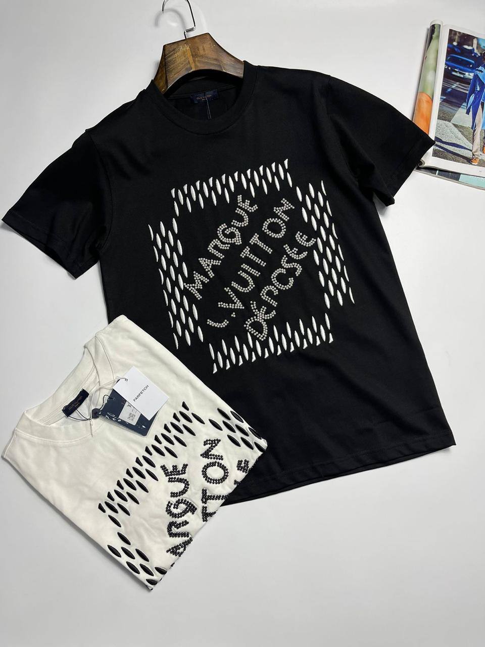 Футболка Louis Vuitton LUX-109624 - это стильный предмет гардероба от известного бренда. Футболка выполнена в классическом черном цвете и имеет надпись с логотипом, украшенную стразами. Она идеально подходит для создания модных образов в повседневной жизни.
