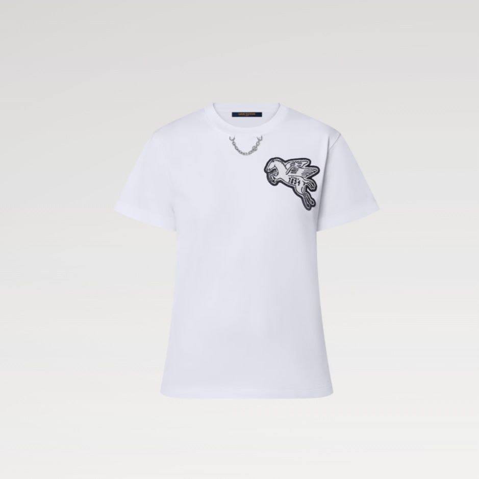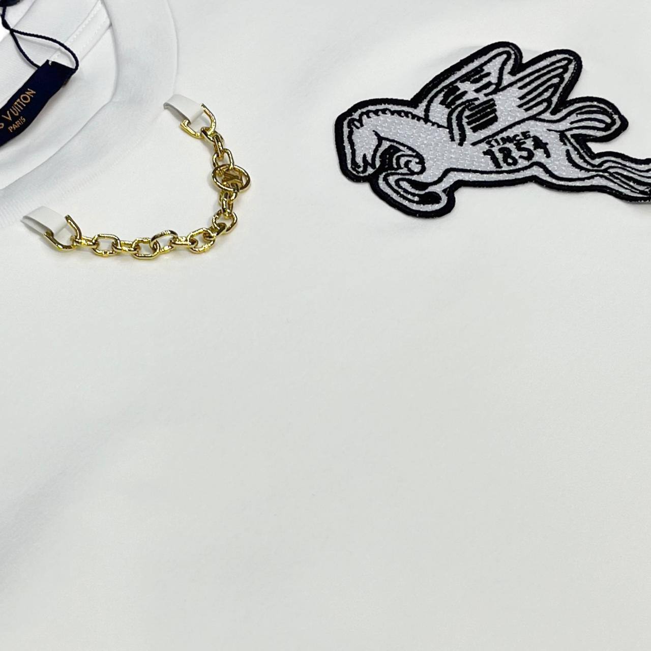 Футболка Louis Vuitton LUX-110196 - это стильный предмет гардероба, сочетающий в себе элегантность и современный дизайн. Белая футболка, украшенная детальным вышитым изображением, подчеркивает изысканный вкус владельца. Идеально подходит для создания как повседневных, так и более формальных образов.