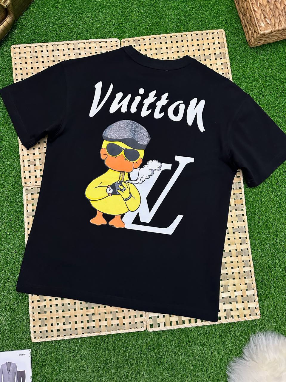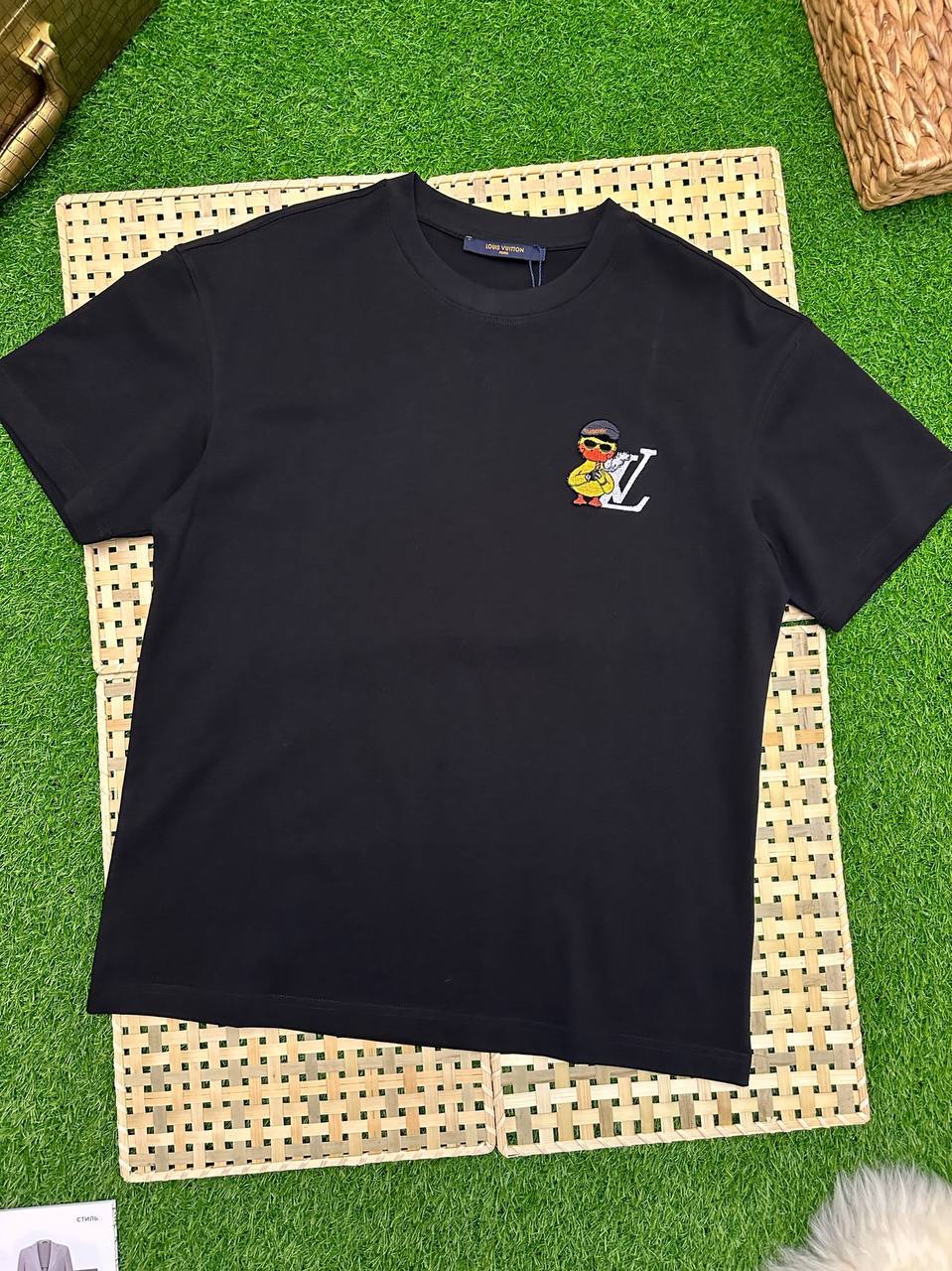 Футболка Louis Vuitton LUX-85859 представляет собой стильный предмет гардероба. Она выполнена в классическом черном цвете, который делает ее универсальной для любого образа. Футболка дополнена яркой вышивкой в виде персонажа и логотипа бренда.