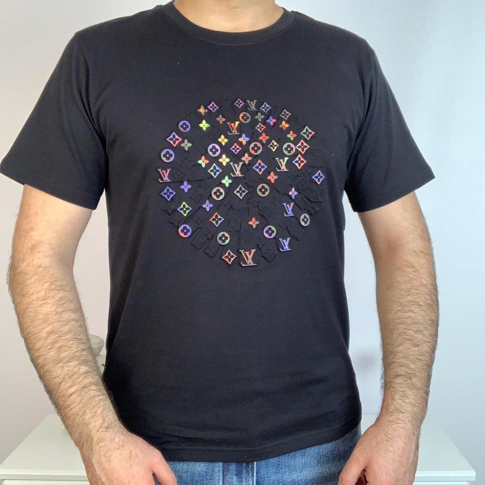 Футболка Louis Vuitton LUX-46819 представляет собой стильный элемент мужского гардероба, выполненный в классическом черном цвете. Ярким акцентом является оригинальный принт в виде монограммы Louis Vuitton, расположенный в центре изделия. Этот дизайн придает футболке современный и узнаваемый вид, подчеркивая статус владельца.