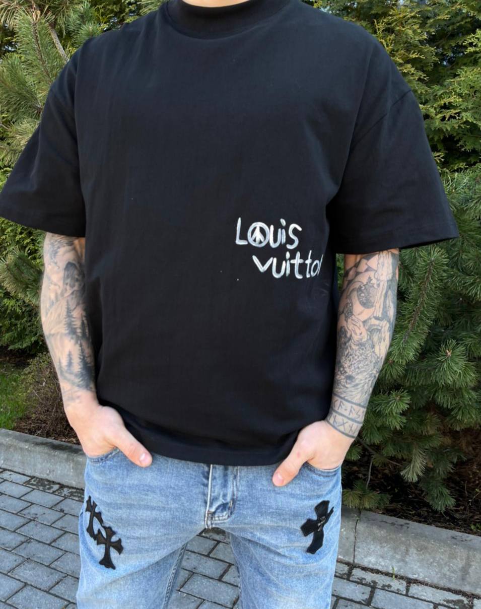 Черная футболка Louis Vuitton LUX-49060 представляет собой стильный элемент гардероба, идеально подходящий для создания современных и непринужденных образов. Футболка выполнена в классическом черном цвете и дополнена лаконичным, но узнаваемым принтом с названием бренда. Её свободный крой и минималистичный дизайн делают эту футболку универсальным выбором для повседневного ношения.