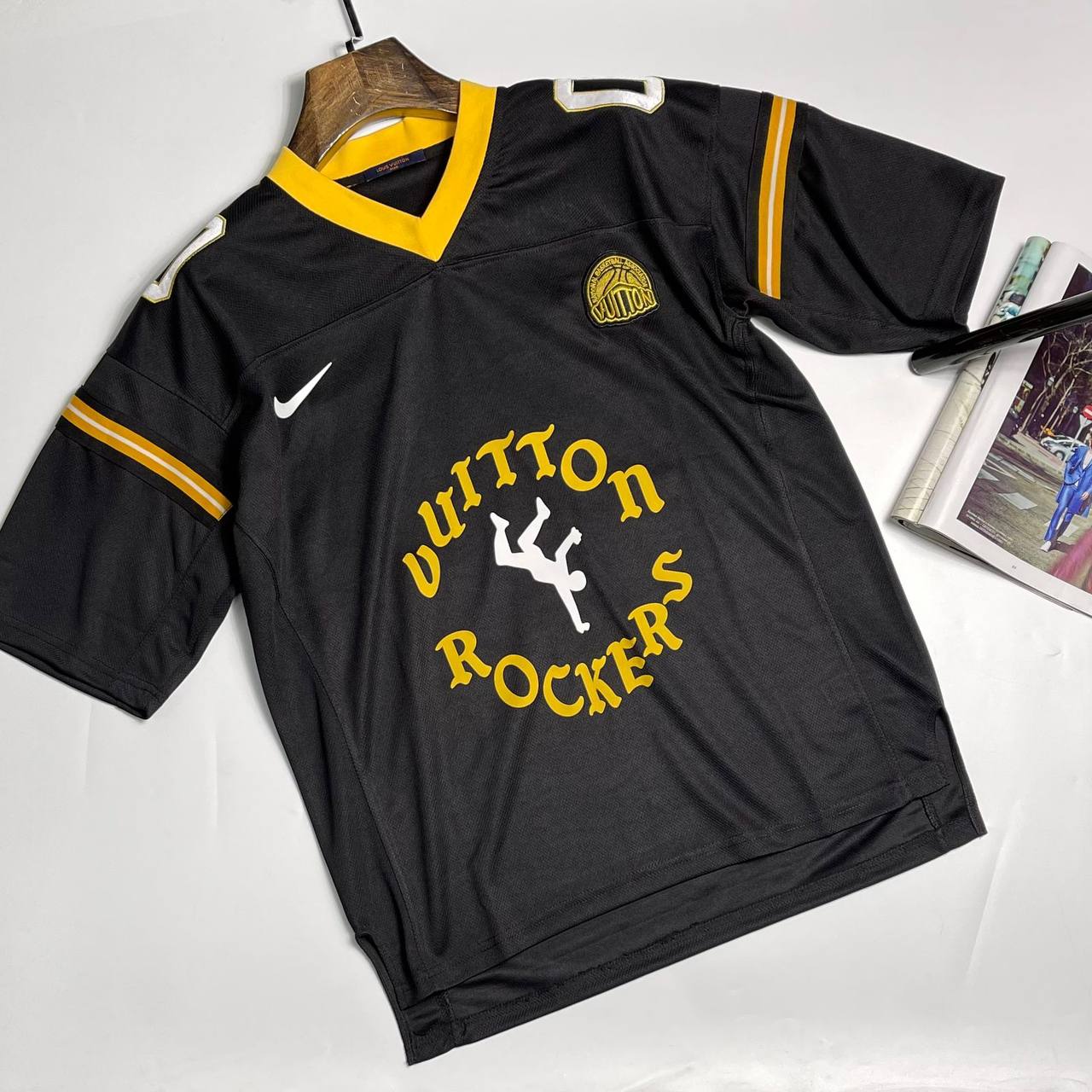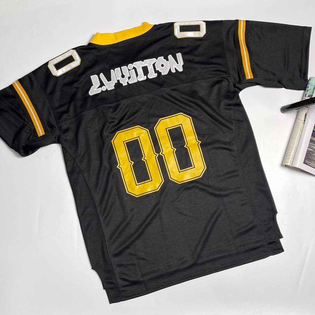 Футболка Louis Vuitton LUX-89617 - это стильный предмет одежды в спортивном стиле. Черный цвет футболки дополнен яркими желтыми элементами, создавая контрастный и узнаваемый образ. Футболка идеально подходит для повседневной носки, подчеркивая индивидуальность и вкус владельца.