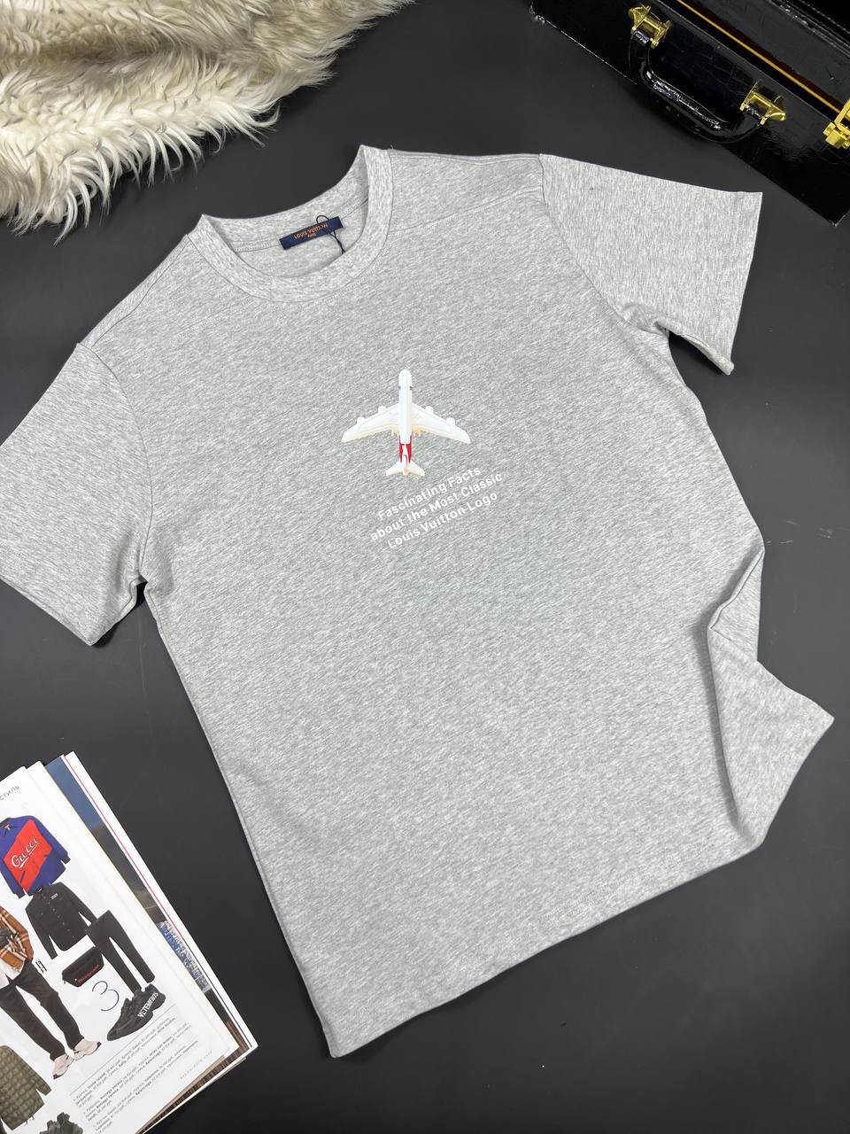 Мужская футболка Louis Vuitton LUX-66534 представляет собой стильный и комфортный элемент гардероба, идеально подходящий для повседневного ношения. Дизайн футболки выполнен в современном стиле, с акцентом на минимализм и элегантность, что характерно для бренда Louis Vuitton. Оригинальный принт в виде самолета с надписью "Fascinating Facts about the Most Classic Louis Vuitton Logo" добавляет футболке уникальности и подчеркивает ее эксклюзивность.
