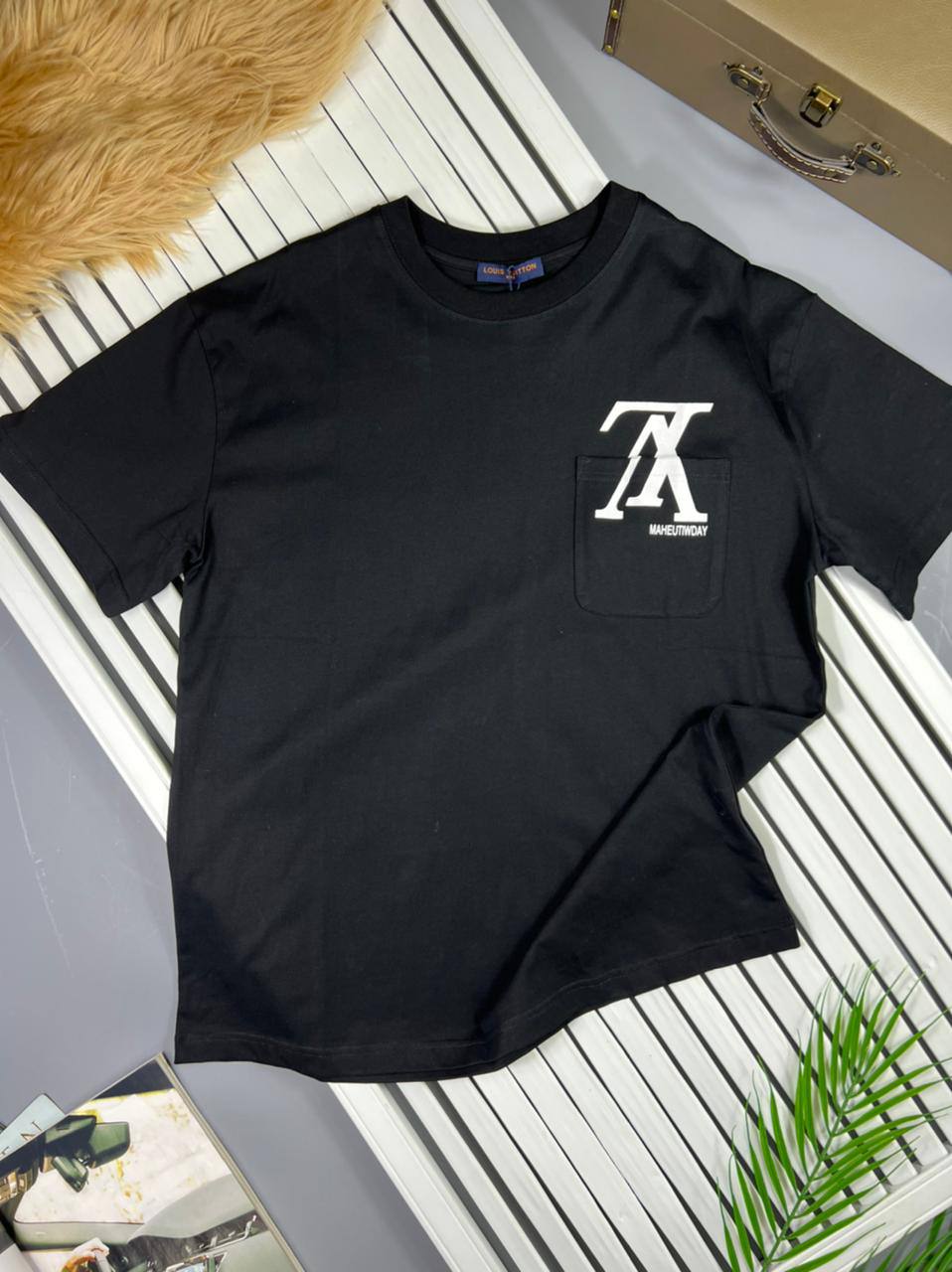 Мужская футболка Louis Vuitton LUX-71553, представленная на изображении, выполнена в классическом стиле. Она черного цвета, с небольшим карманом на груди, украшенным белым логотипом. Футболка подойдет для повседневного использования, сочетая в себе комфорт и узнаваемый стиль бренда.