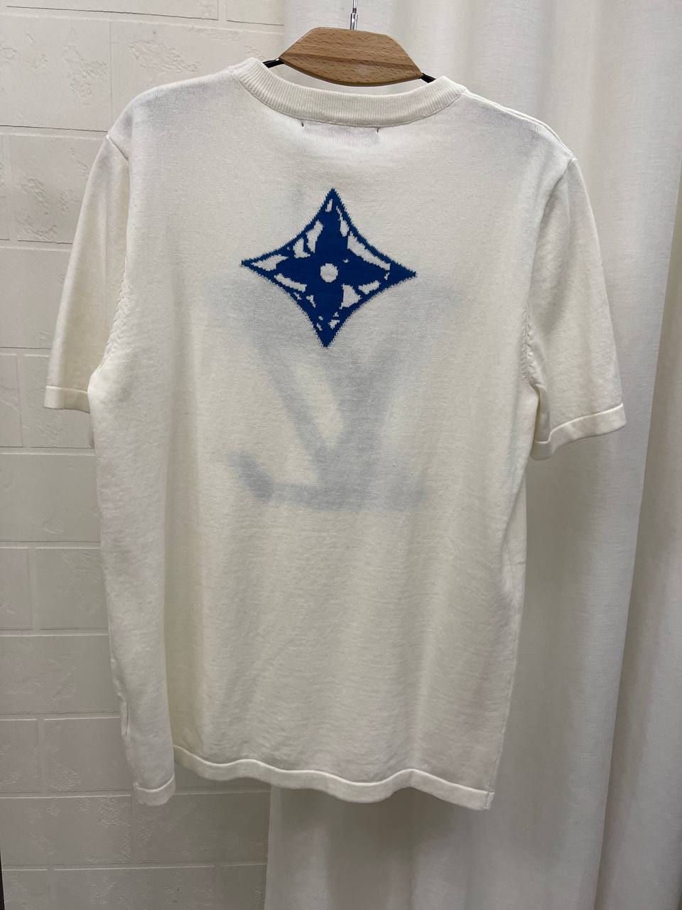 Футболка мужская Louis Vuitton LUX-99652 представляет собой стильный предмет гардероба от известного бренда. Футболка выполнена в белом цвете с ярким синим логотипом бренда. Изделие имеет короткие рукава и круглый воротник.