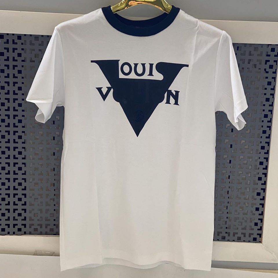 Футболка женская Louis Vuitton LUX-30653 — это стильная и модная вещь, сочетающая в себе элегантность и повседневный комфорт. Данная модель выполнена в классическом белом цвете с контрастным темно-синим принтом и воротником, что придает ей особый шик. Она идеально подойдет для создания разнообразных образов.