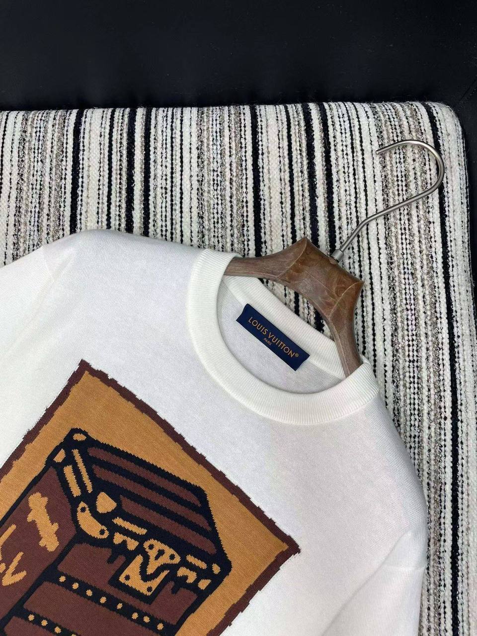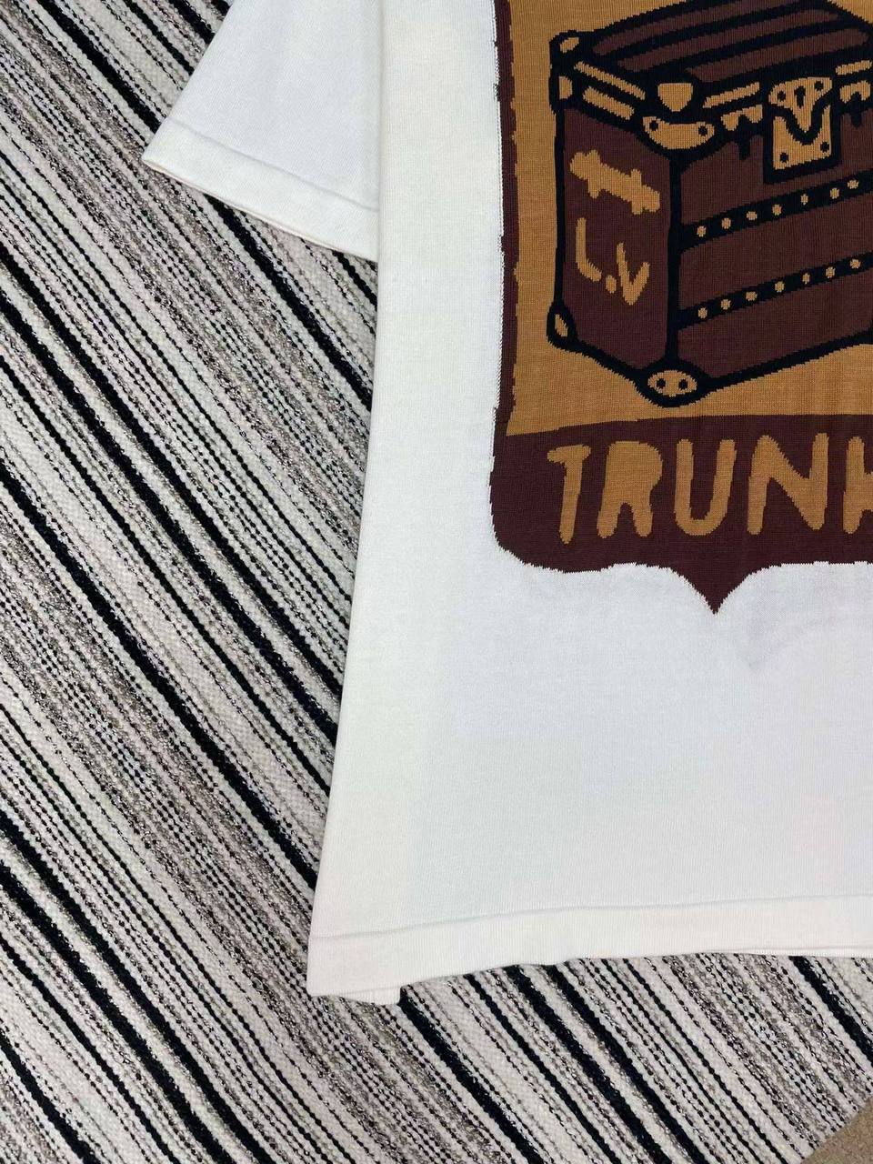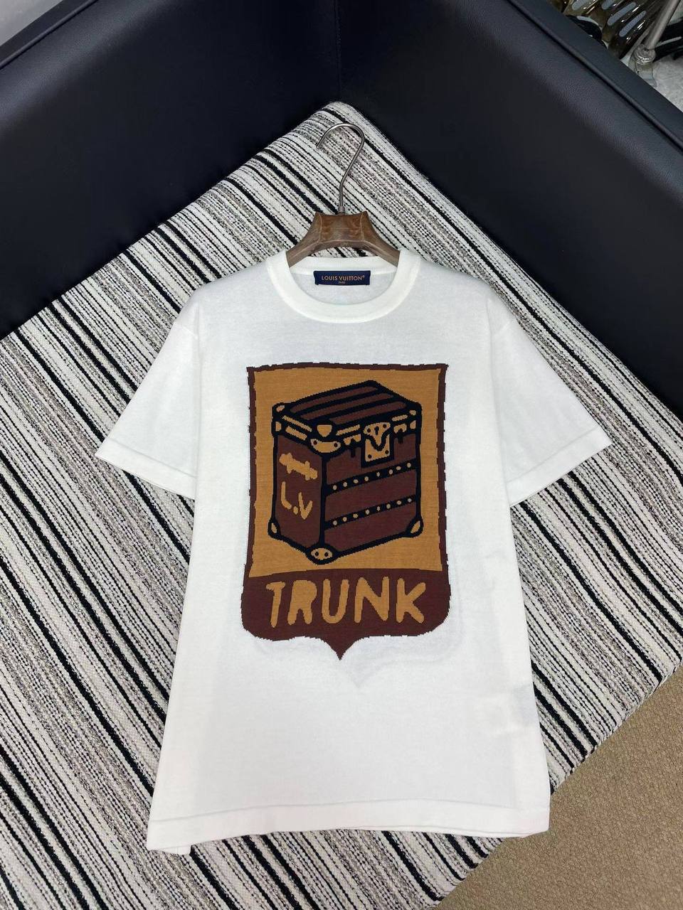 Женская футболка Louis Vuitton с оригинальным принтом в виде чемодана – стильный акцент в вашем гардеробе. Эта модель отличается комфортным кроем и качественным исполнением. Идеальный выбор для создания модных и непринужденных образов.