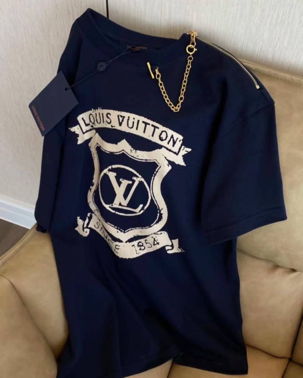 Эта темно-синяя футболка женская Louis Vuitton LUX-62231 является воплощением стиля и комфорта. Свободный крой и классический дизайн делают ее универсальной основой для множества образов. Привлекательный принт с логотипом бренда добавляет футболке узнаваемости и эксклюзивности. Дополнительные детали, такие как золотистая цепочка и молния на плече, придают изделию оригинальность и роскошный вид, подчеркивая статус владельца.