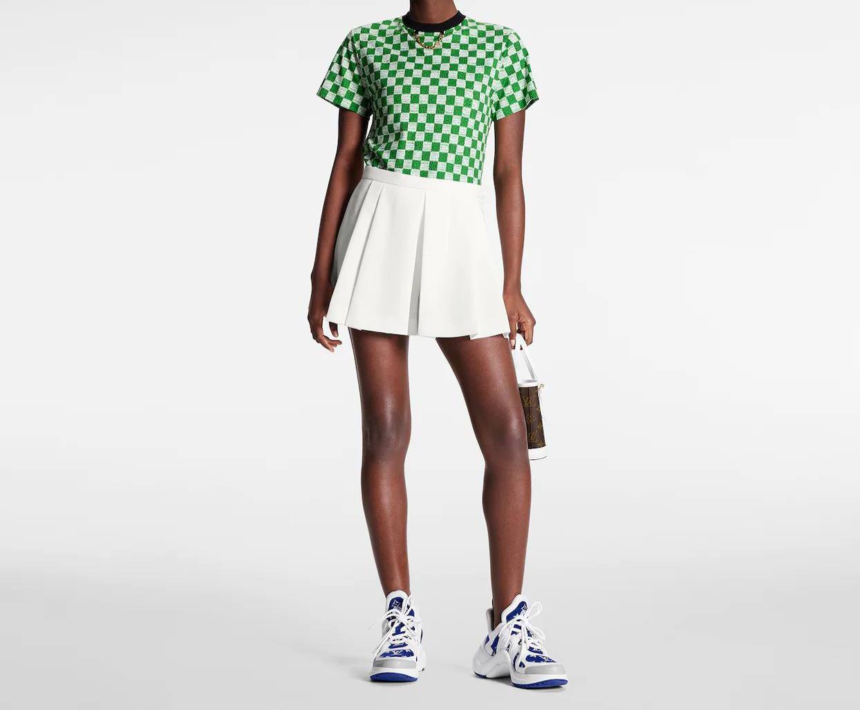 Футболка женская Louis Vuitton LUX-72162 представляет собой стильный предмет гардероба. Футболка выполнена в спортивном стиле с узором в виде зелено-белой клетки, что придает ей современный и узнаваемый вид. Идеально подходит для повседневного ношения, сочетая в себе комфорт и элегантность.