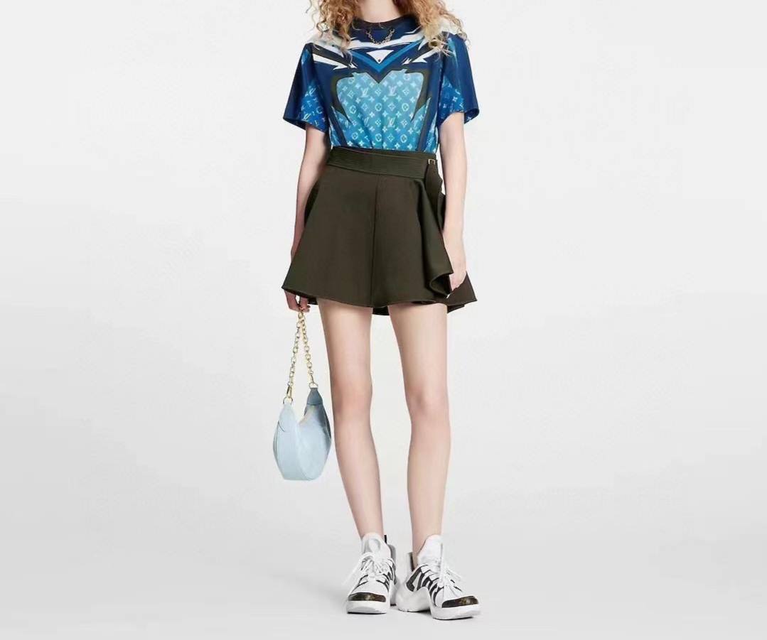 Футболка женская Louis Vuitton LUX-82341 представляет собой стильный предмет гардероба от известного бренда. Футболка выполнена в ярком дизайне с насыщенными оттенками синего и белого цветов, украшенная фирменным узором. Она имеет классический крой с короткими рукавами, что делает ее идеальным выбором для создания модных повседневных образов.