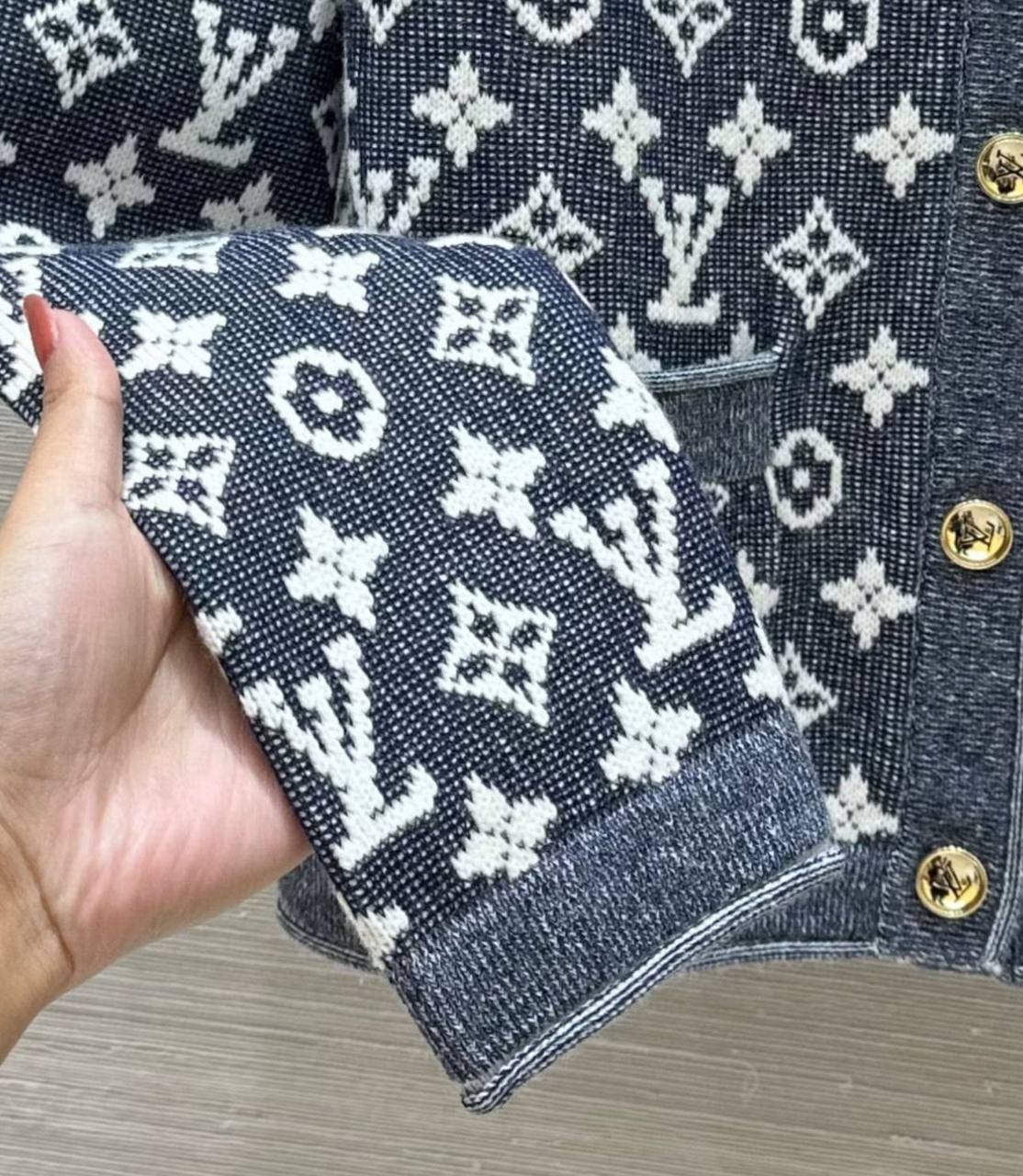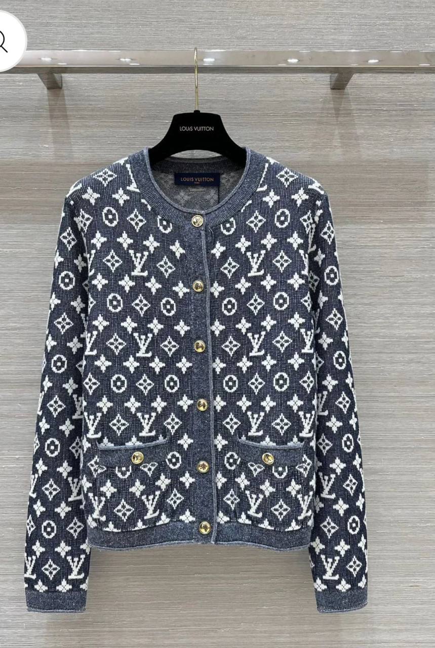 Кардиган Louis Vuitton LUX-111066 представляет собой стильный предмет гардероба с узнаваемым логотипом бренда. Модель выполнена в классическом стиле с круглым вырезом и застежкой на пуговицы. Кардиган украшен фирменным узором с монограммой Louis Vuitton, который придает ему изысканный вид.