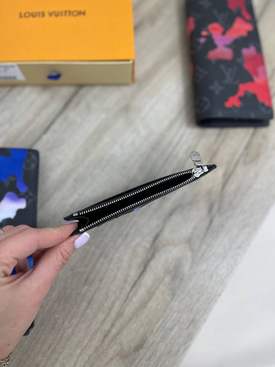 Картхолдер Louis Vuitton LUX-84779 — это стильный аксессуар, который сочетает в себе элегантность и функциональность. Картхолдер выполнен в черном цвете с ярким акцентом в виде абстрактного принта. Он идеально подходит для хранения карт, визиток и небольших купюр.