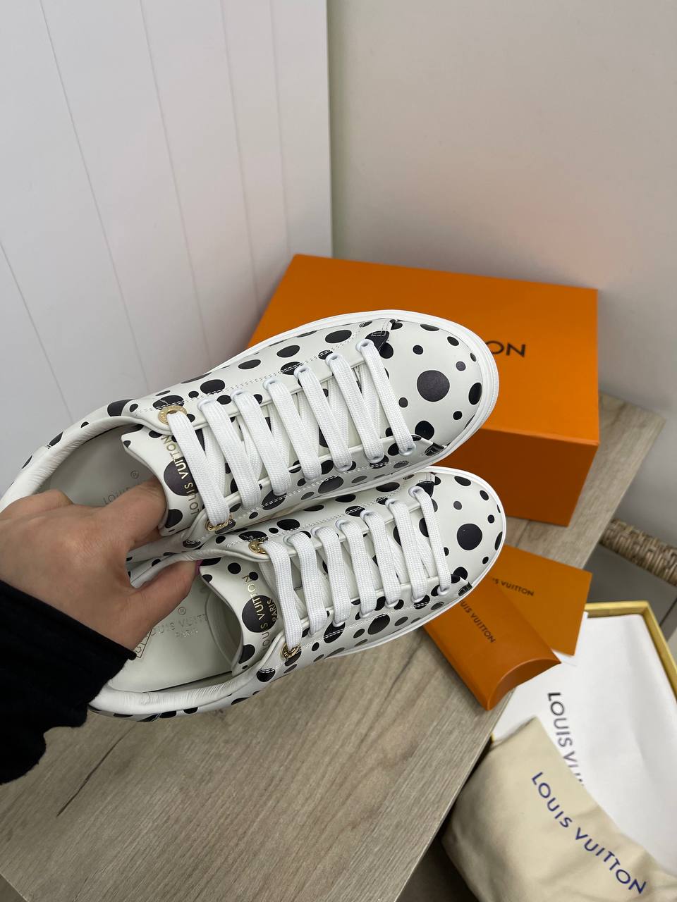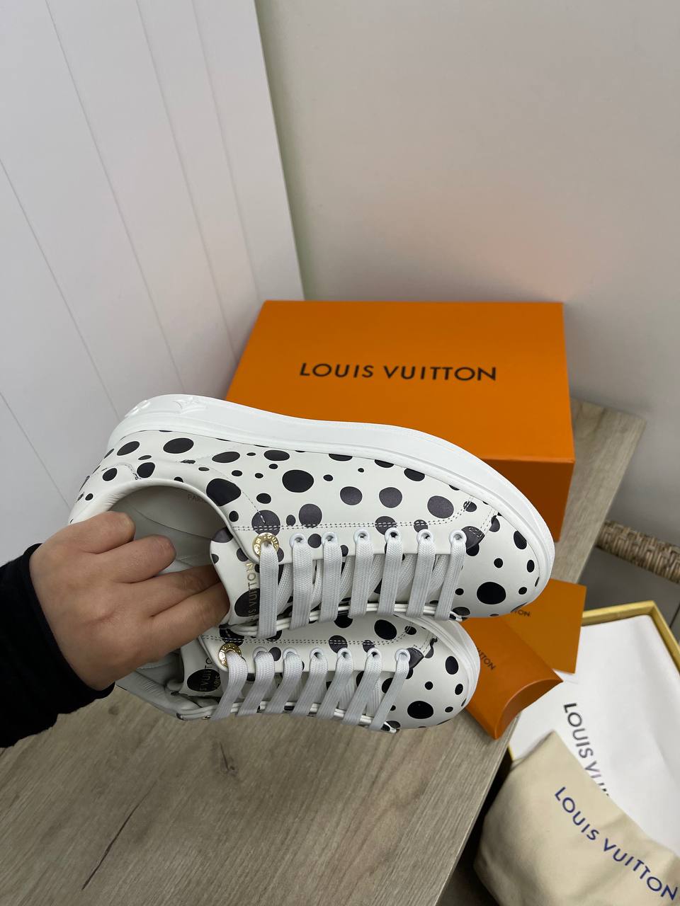 Женские кеды Louis Vuitton LUX-85597 — это стильная обувь в повседневном стиле. Кеды выполнены в белом цвете с черным принтом в горошек, что придает им оригинальный и узнаваемый вид. Они идеально подойдут для создания модных образов на каждый день.