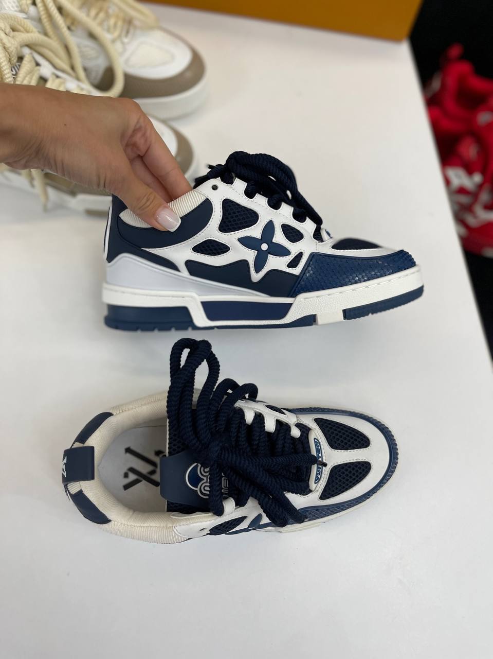 Кеды женские Louis Vuitton LUX-94741 - это стильная обувь для повседневной носки, сочетающая в себе элегантность и комфорт. Кеды выполнены в бело-синей цветовой гамме, имеют уникальный дизайн с фирменным узором бренда. Эта модель подчеркнет ваш стиль и добавит образу изысканности.
