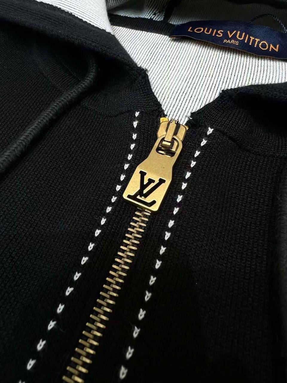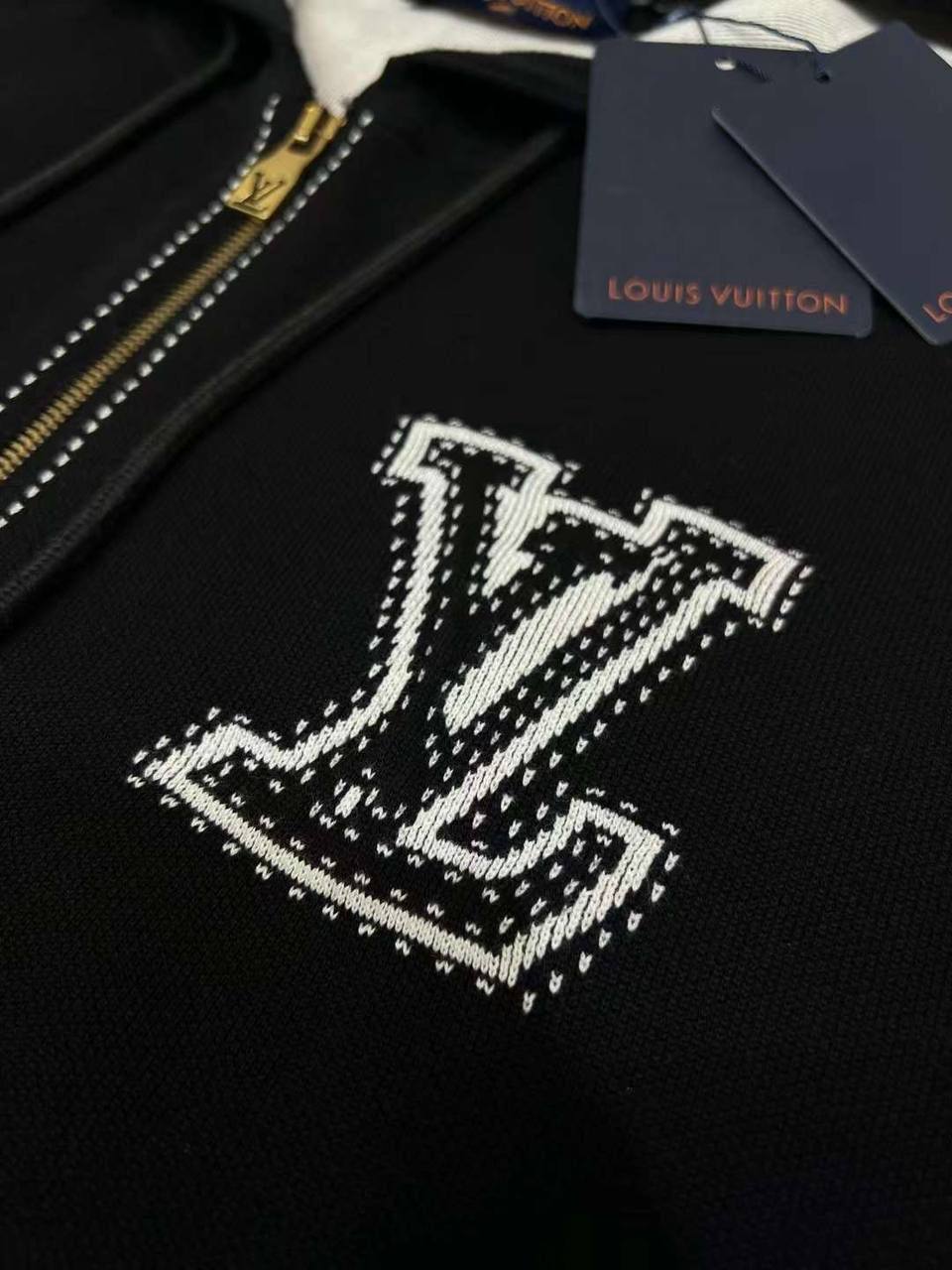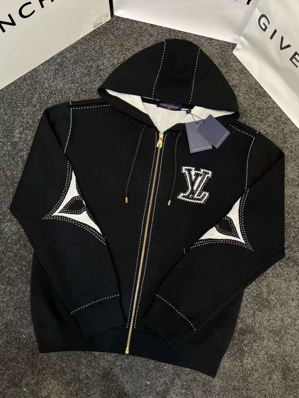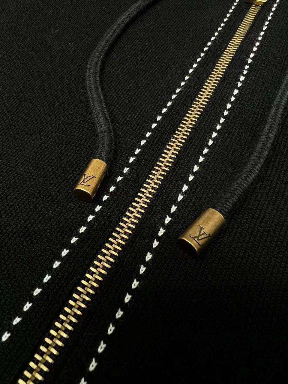 Кофта Louis Vuitton LUX-113291 представляет собой стильный предмет гардероба, сочетающий в себе элементы спортивного и повседневного стилей. Кофта выполнена в черном цвете, имеет капюшон и застегивается на молнию. Отличительной чертой является контрастная белая строчка и логотип бренда на груди.