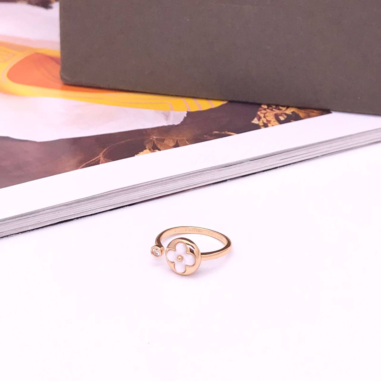 Кольцо Louis Vuitton LUX-74208 - изысканное украшение, сочетающее в себе элегантность и фирменный стиль. Золотистый оттенок металла и белый цветок создают привлекательный контраст. Этот аксессуар станет прекрасным дополнением к любому образу.