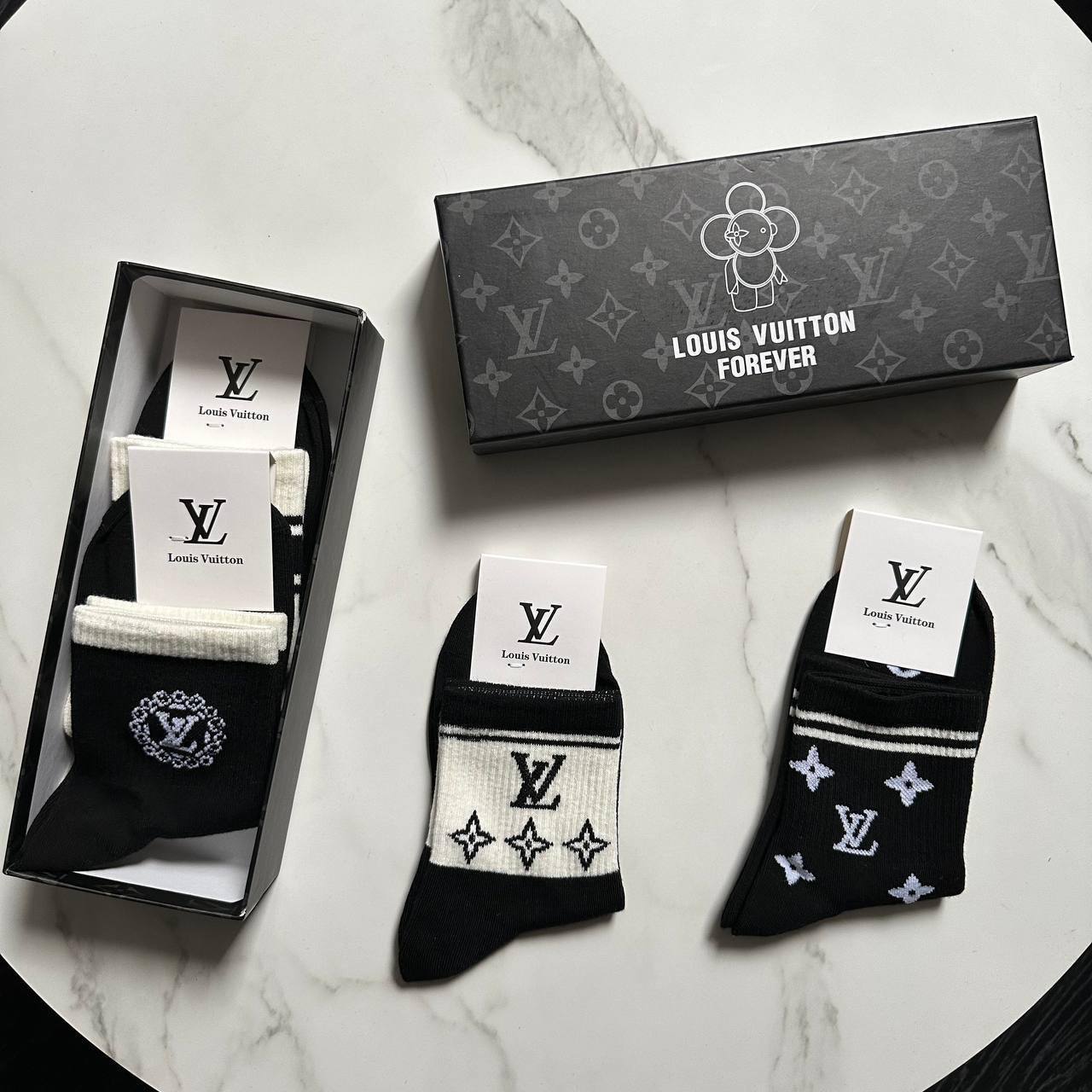 Комплект Louis Vuitton LUX-98554 — это стильный аксессуар, который подчеркнет индивидуальность. Комплект выполнен в классическом черном и белом цвете. Носки дополнят любой образ.
