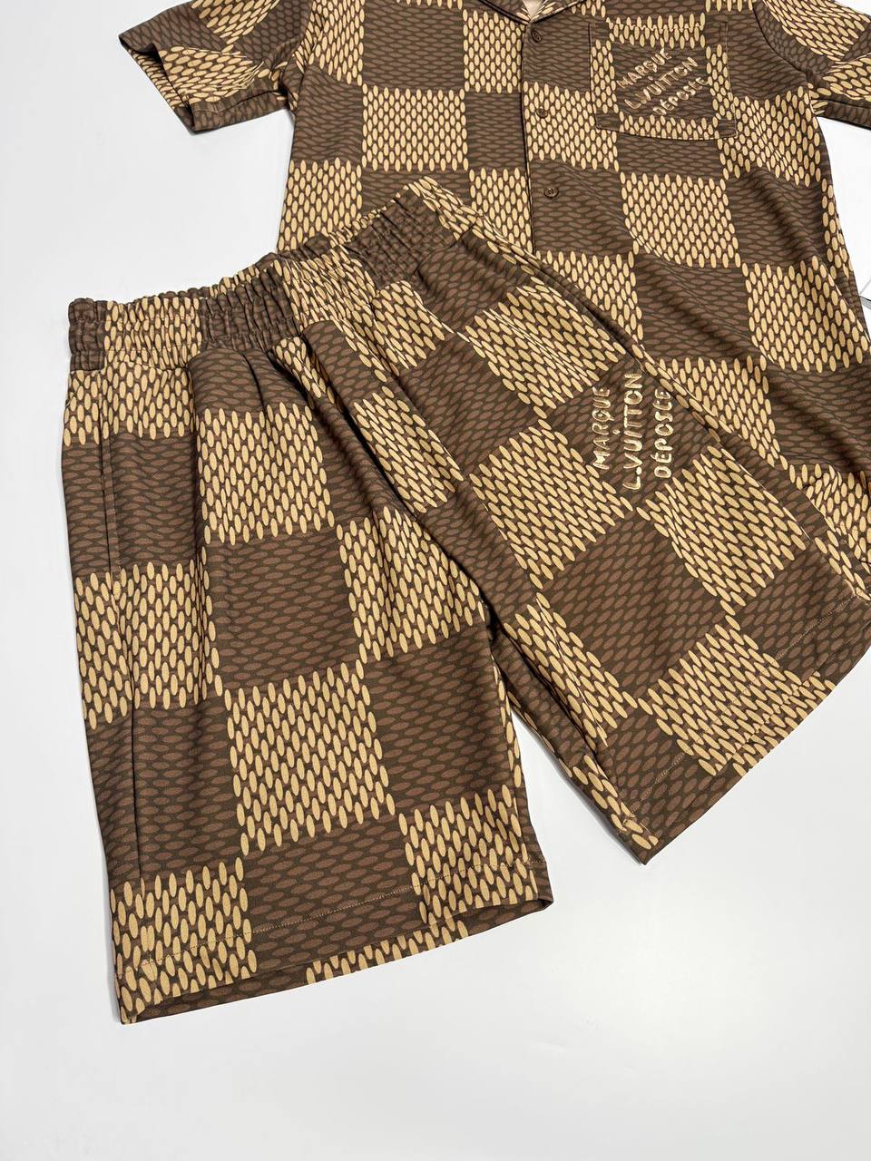 Комплект Louis Vuitton LUX-119878 представляет собой стильный комплект одежды, состоящий из рубашки с коротким рукавом и шорт. Комплект выполнен в фирменном стиле бренда, сочетает в себе элегантность и современный дизайн. Он выполнен в коричневых тонах, которые подойдут для повседневного гардероба.