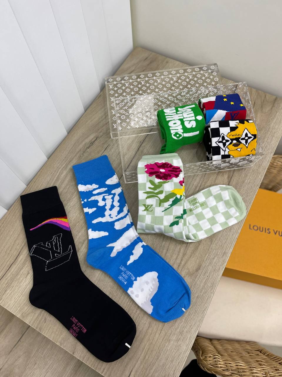 Комплект носков (6 пар) Louis Vuitton LUX-79801 представляет собой стильный аксессуар, который подчеркнет индивидуальность. В комплекте представлены носки разной расцветки. Носки подойдут для повседневной носки, а также для создания ярких образов.
