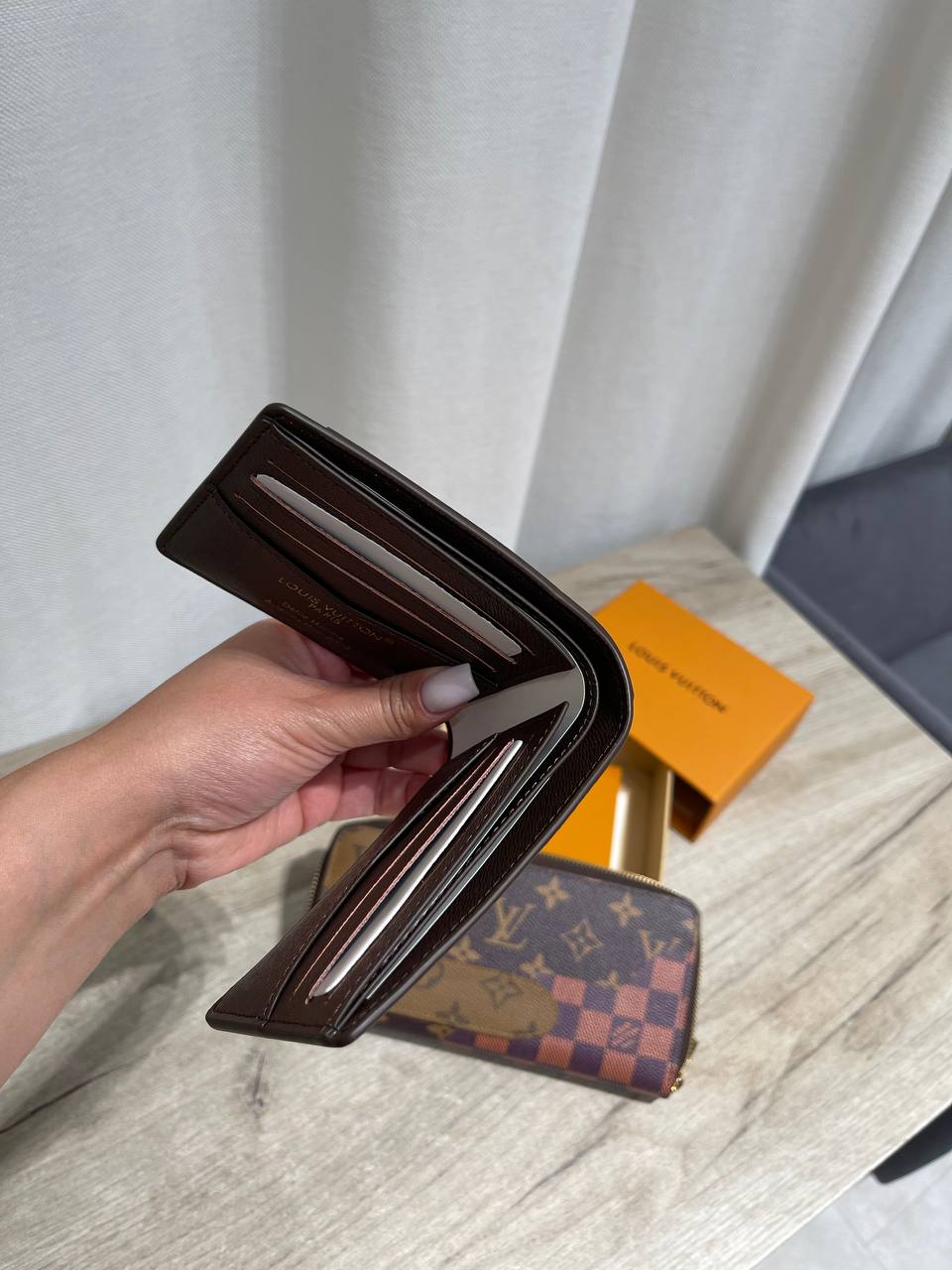 Кошелек Louis Vuitton LUX-123099 - стильный аксессуар, сочетающий в себе классический дизайн и современные акценты. Он идеально подходит для хранения денег и карт, добавляя элегантности вашему образу.