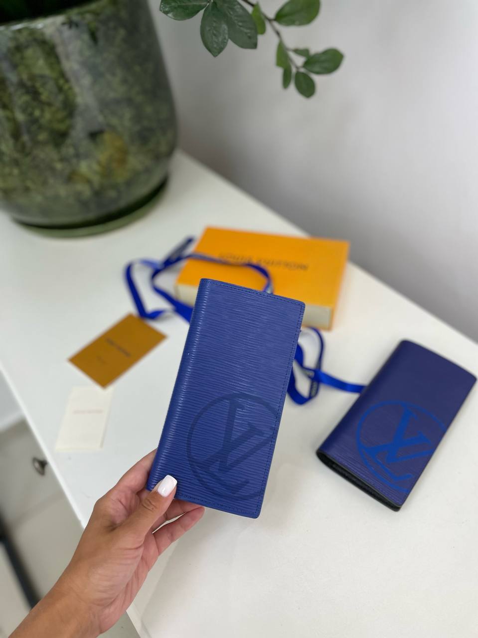 Кошелёк Louis Vuitton LUX-72824 — это элегантный аксессуар, выполненный в фирменном стиле бренда. Кошелек представлен в насыщенном синем цвете, имеет текстуру и узнаваемый логотип. Предназначен для хранения денег, кредитных карт и других необходимых мелочей.