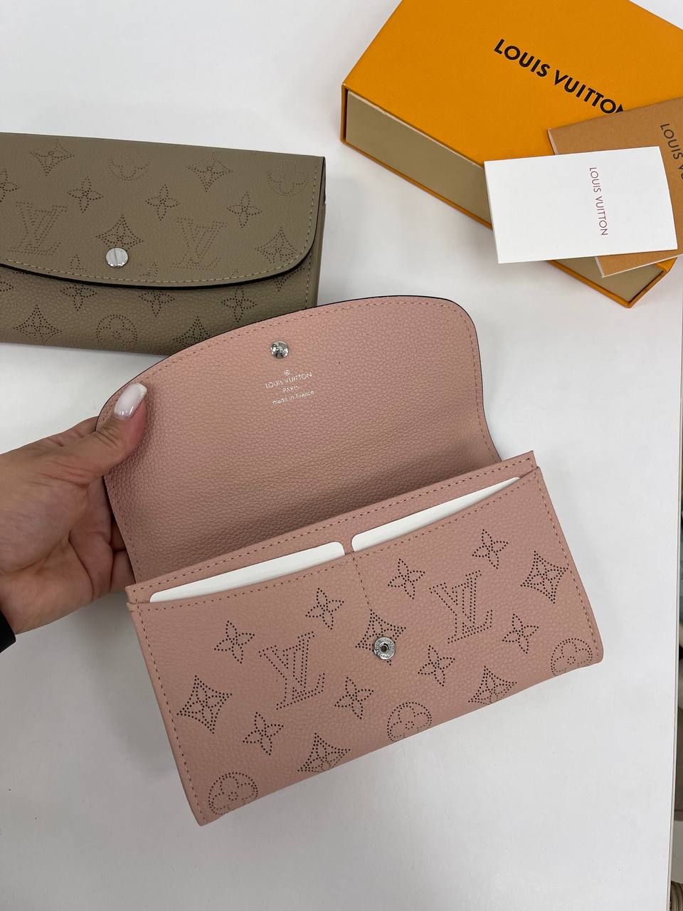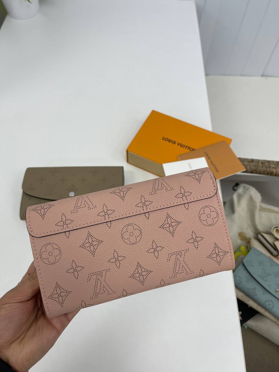 Кошелёк Louis Vuitton LUX-90336 — это элегантный аксессуар, выполненный в фирменном стиле бренда. Кошелек представлен в нежно-розовом цвете с перфорированным узором, создающим изысканный и узнаваемый вид. Предназначен для хранения денег, карт и других мелких предметов, сочетает в себе функциональность и изысканный дизайн.