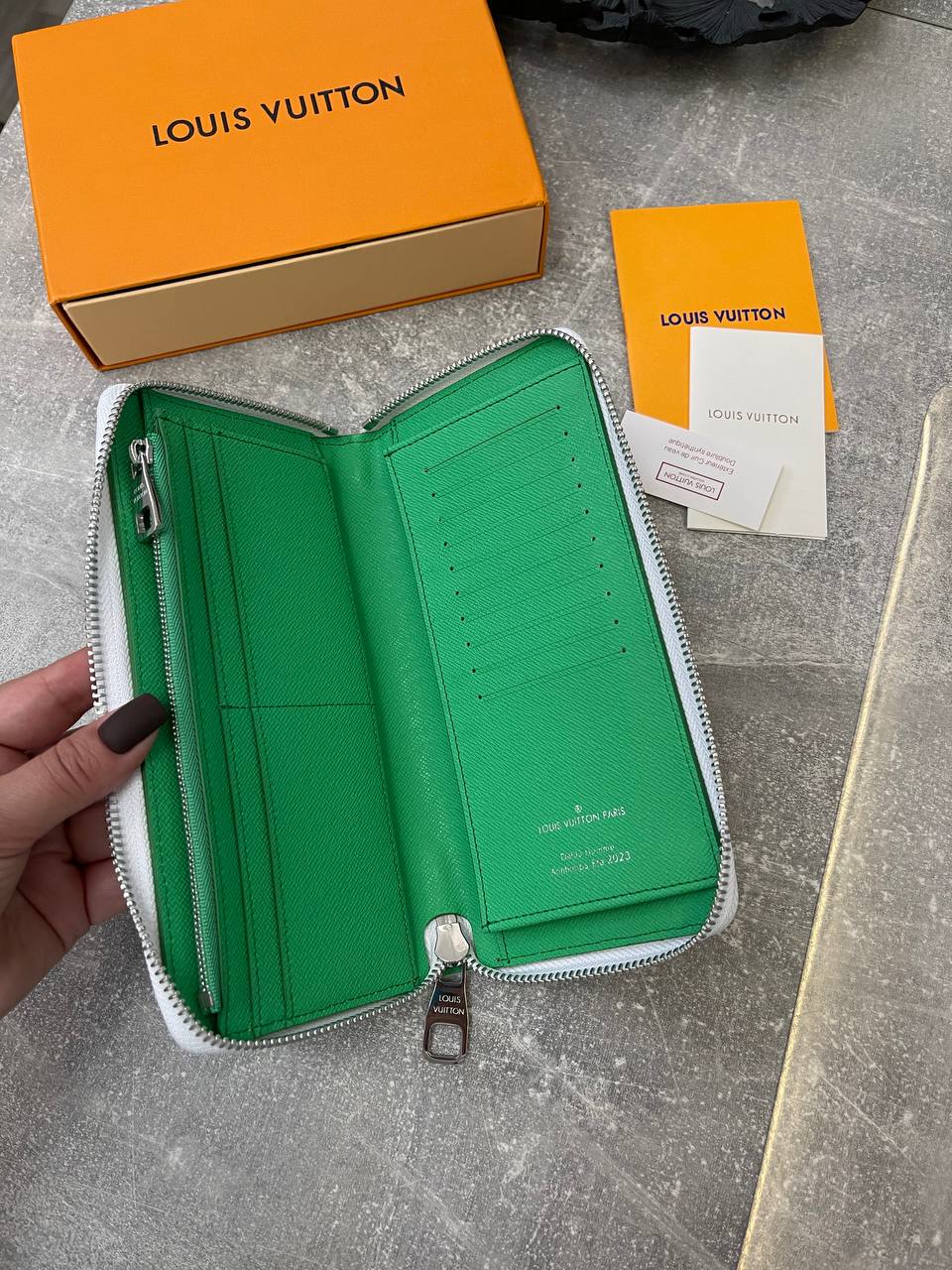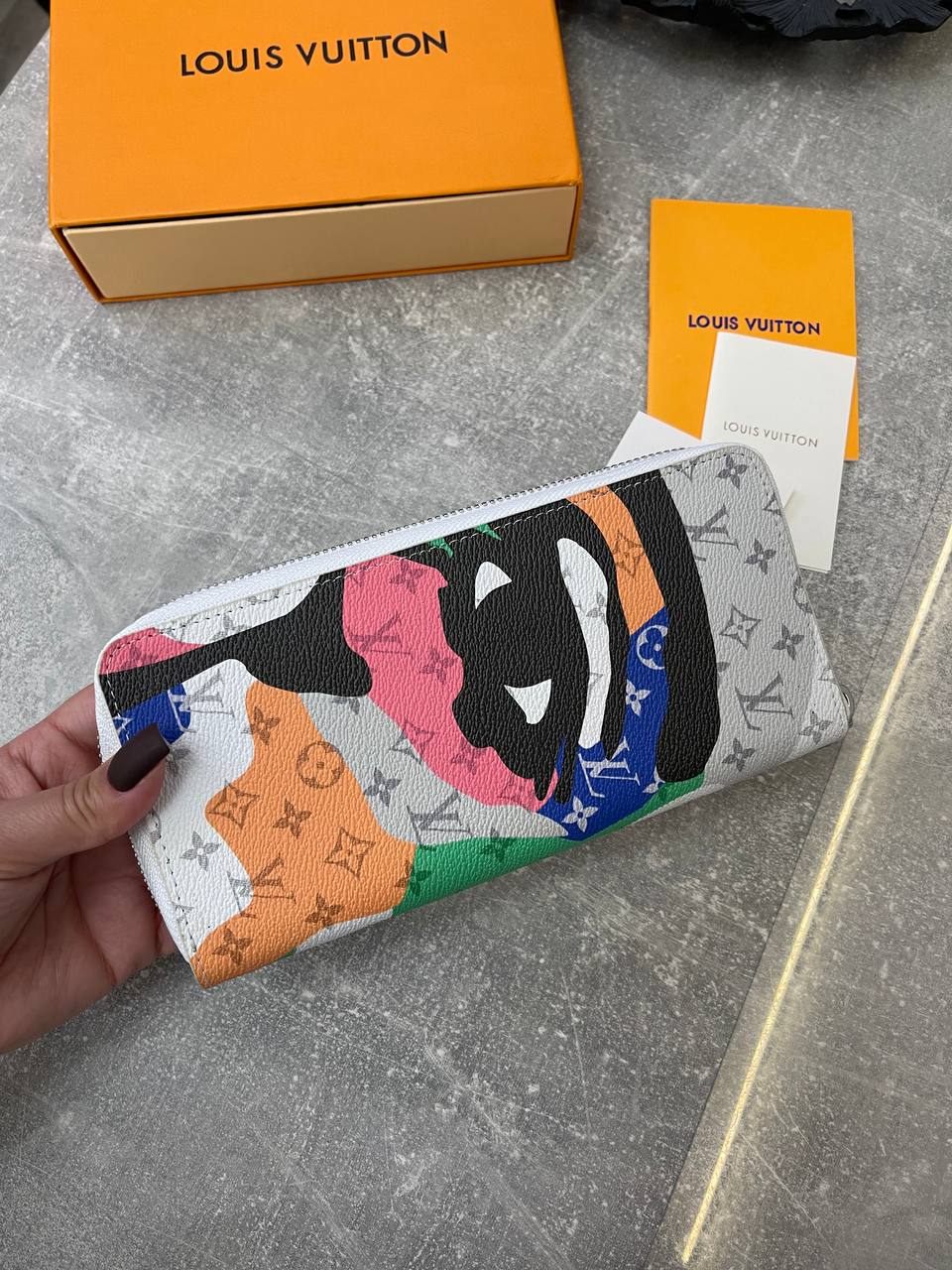 Кошелёк Louis Vuitton LUX-96856 - это стильный аксессуар, который сочетает в себе элегантность и современный дизайн. Кошелёк выполнен в ярких цветах с использованием фирменной монограммы Louis Vuitton. Этот кошелёк предназначен для хранения денег, карт и других мелких предметов.