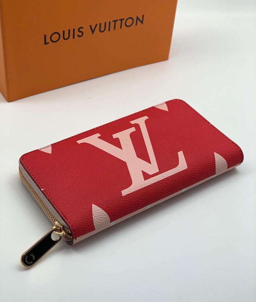 Кошелёк Louis Vuitton LUX-15856 представляет собой стильный и практичный аксессуар, выполненный в узнаваемом стиле бренда. Яркий красный цвет в сочетании с крупным логотипом Louis Vuitton в светло-розовых тонах делает его заметным и модным. Кошелёк на молнии обеспечивает безопасность содержимого и удобство доступа.