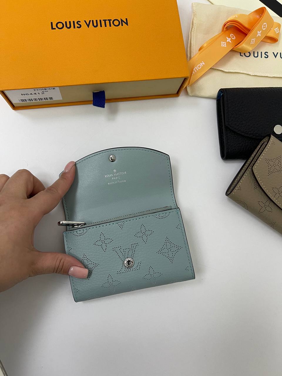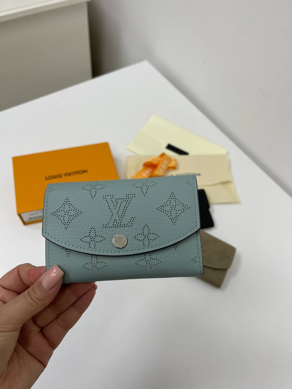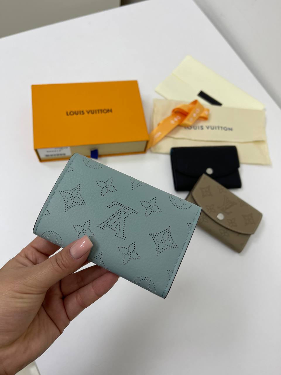 Кошелек женский Louis Vuitton LUX-83035 выполнен в элегантном дизайне. Бирюзовый цвет кожи добавляет изысканности, а перфорированный узор с монограммой бренда создает узнаваемый стиль. Идеален для хранения карт и небольших сумм денег.