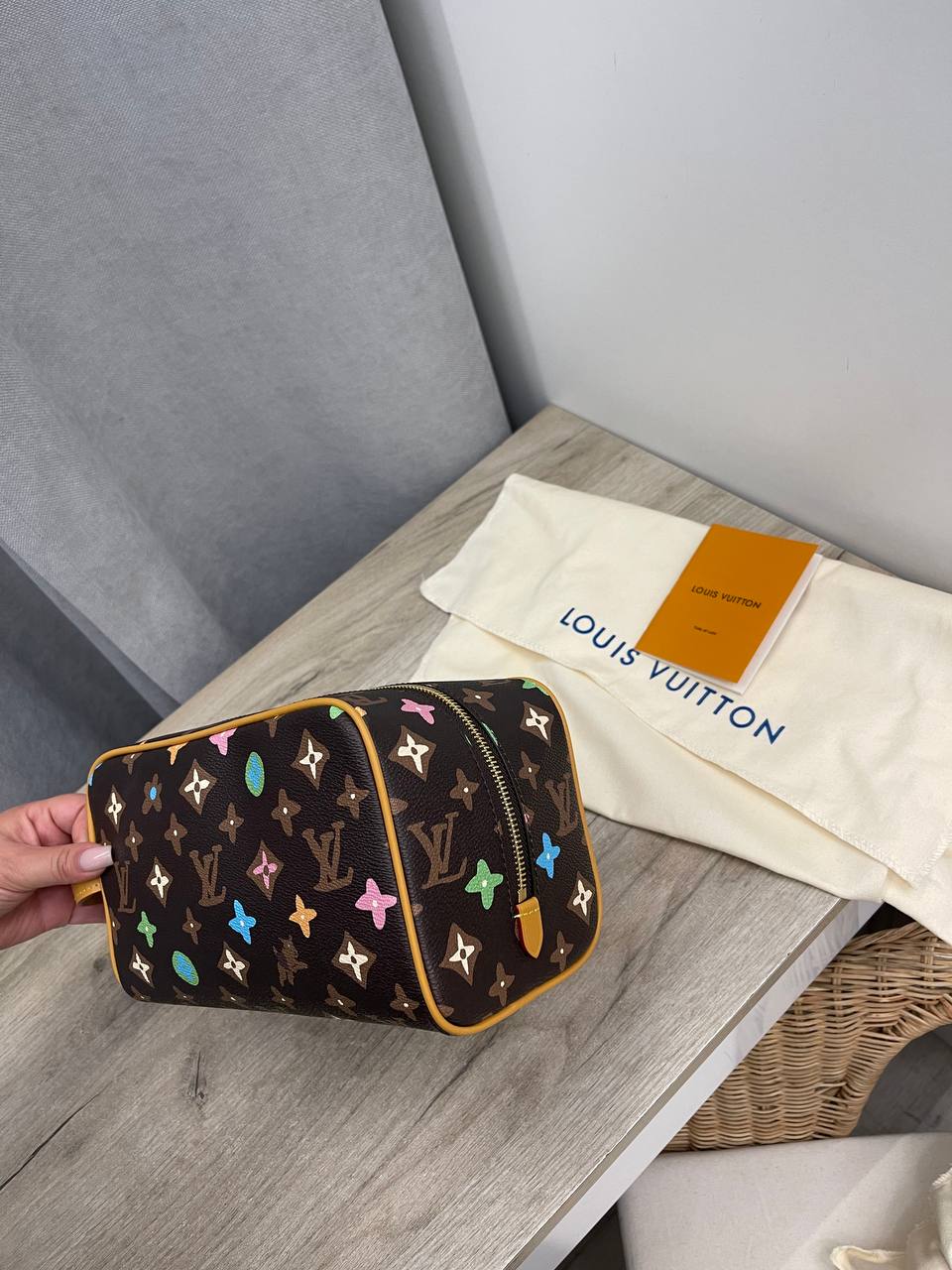 Косметичка Louis Vuitton LUX-104422 - это стильный аксессуар в культовом стиле французского бренда. Основной цвет — коричневый, с ярким узором и разноцветными деталями. Эта косметичка идеально подходит для хранения косметики, средств ухода и других мелочей, а также может служить как стильный аксессуар.