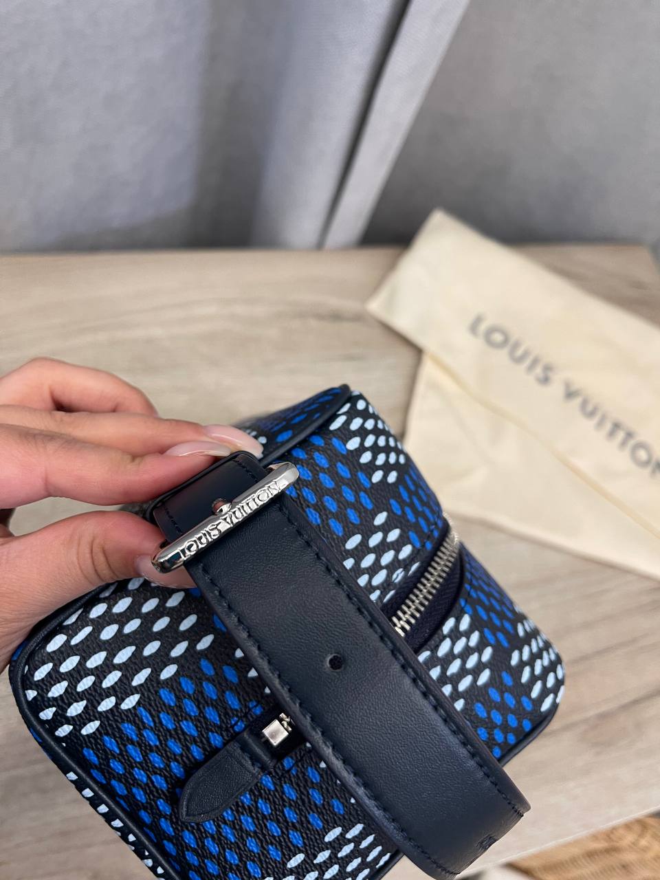 Косметичка Louis Vuitton LUX-110654 — это стильный аксессуар, который сочетает в себе элегантность и функциональность. Косметичка выполнена в насыщенном синем цвете с графическим узором и черными деталями, она станет ярким акцентом в вашем образе. Идеально подходит для хранения косметики и других необходимых мелочей, что делает ее практичным и незаменимым аксессуаром.