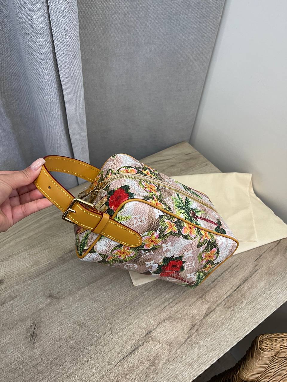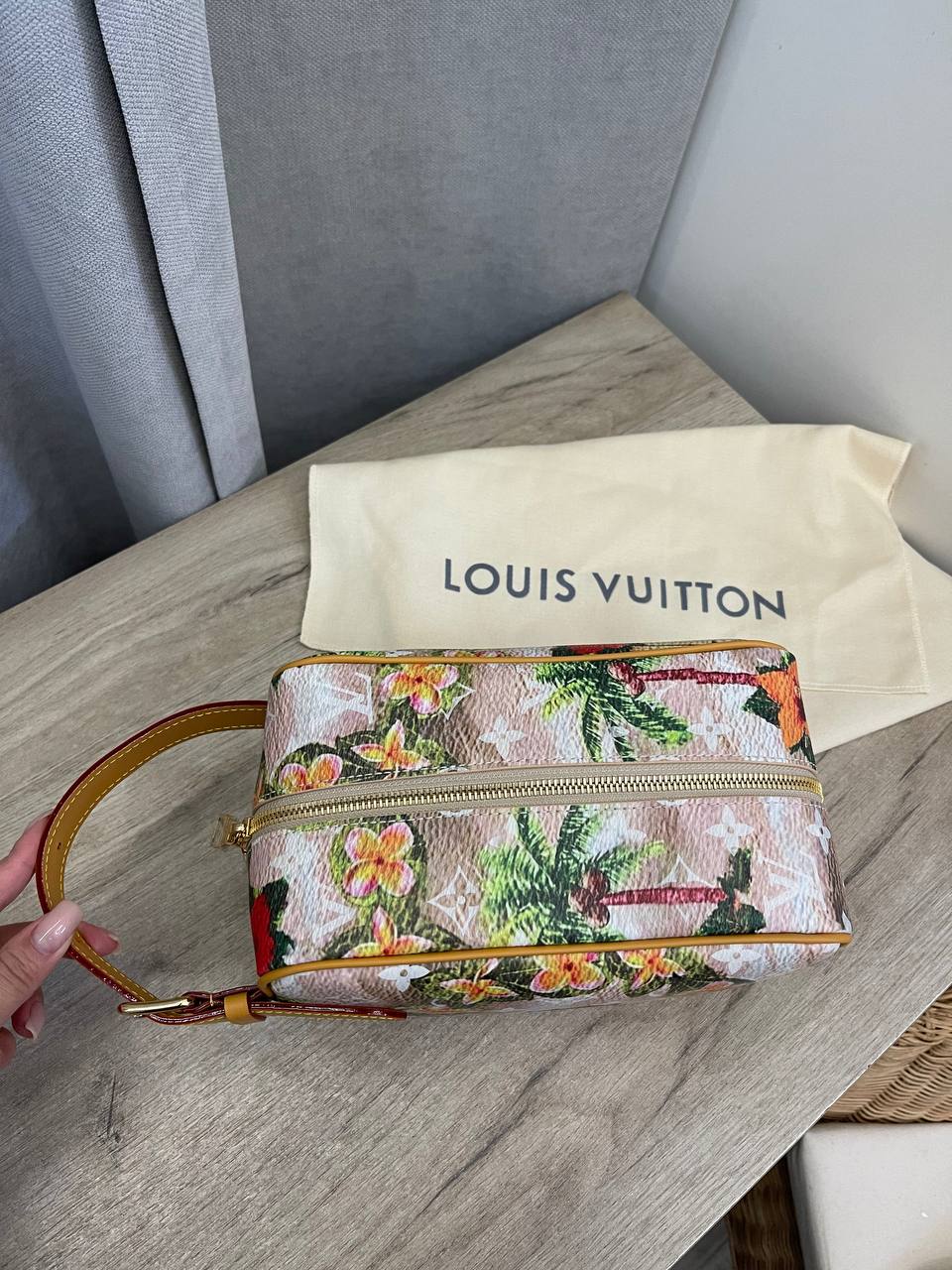 Косметичка Louis Vuitton LUX-110655 – это элегантный аксессуар, выполненный в ярком цветочном принте с тропическими мотивами. Косметичка имеет прямоугольную форму с двумя отделениями на молнии и оснащена удобной ручкой. Она идеально подходит для хранения косметики и других необходимых мелочей.