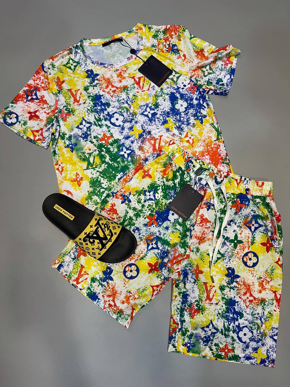Данный костюм Louis Vuitton LUX-49853 представляет собой яркий комплект, состоящий из футболки и шорт, выполненный в стиле casual. Оригинальный принт с узнаваемыми монограммами бренда в различных цветовых вариациях, дополненный абстрактными мазками, придает изделию эксклюзивность. Комплект идеально подойдет для создания эффектных летних образов.